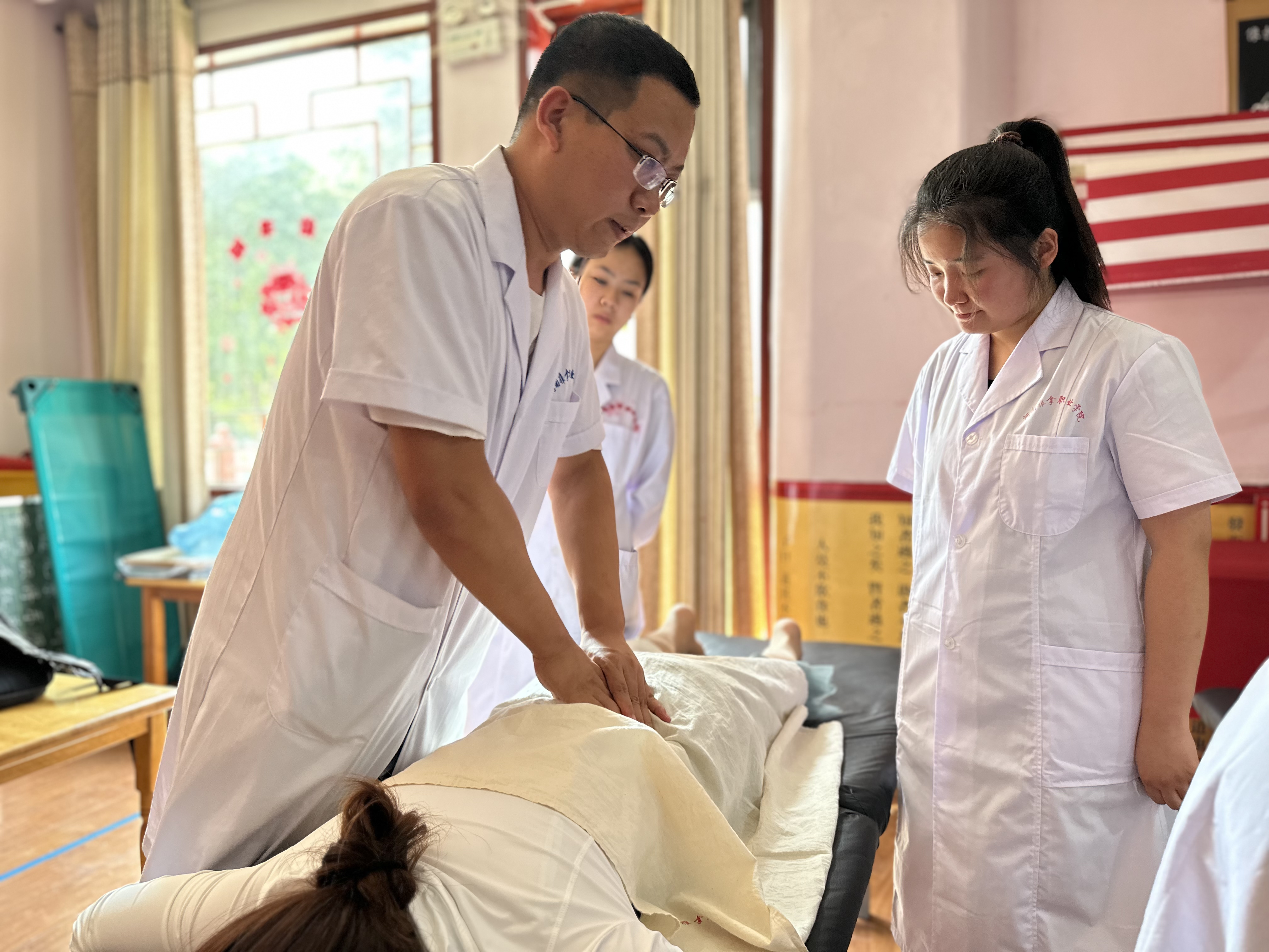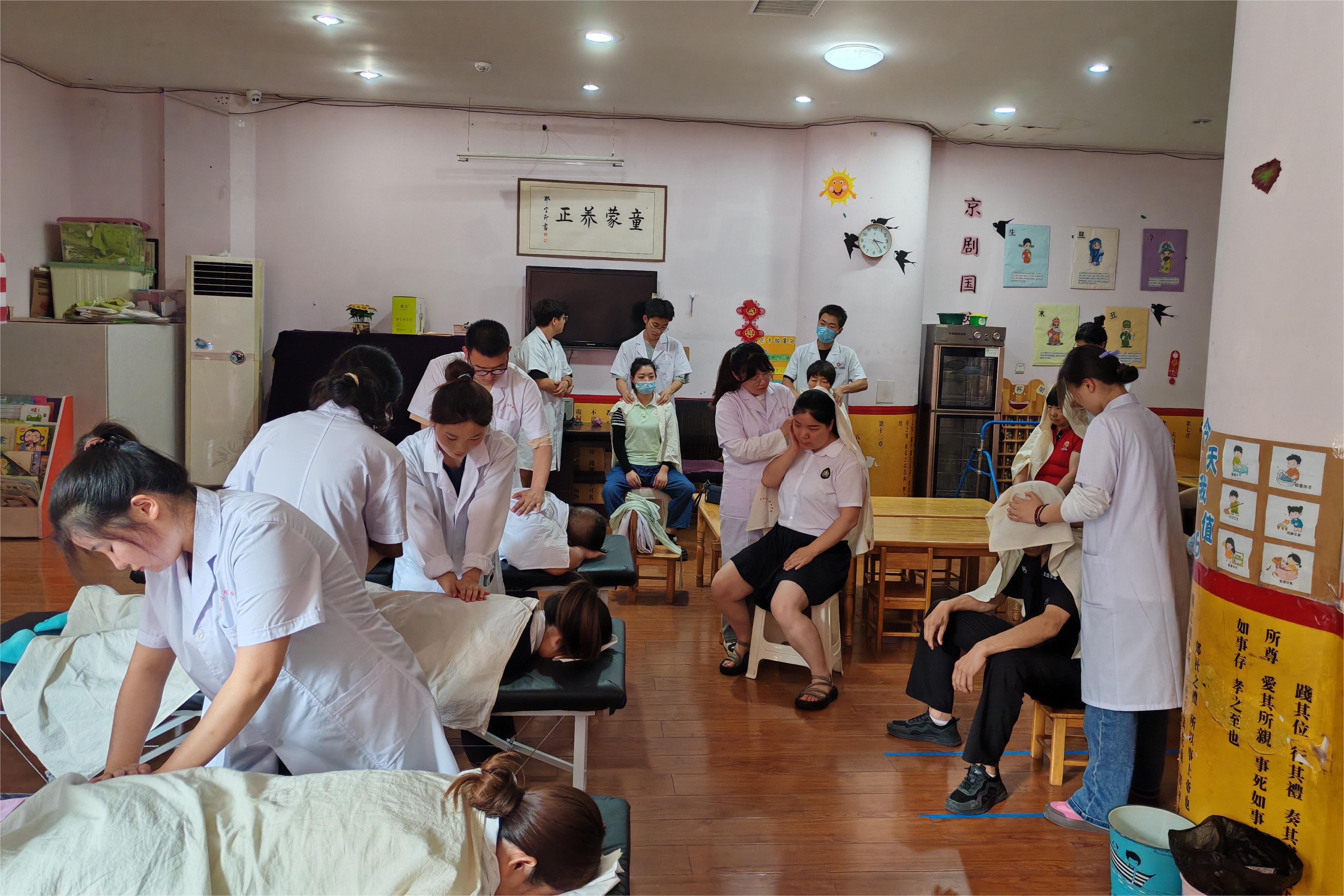活动现场,专业老师带领学生重点对幼儿园老师易发的关节炎、慢性肌肉劳损、网球肘及小朋友易发的食积、发热等各类疾病进行了中医问诊,针对不同病症和个体差异提出合理的诊疗建议,并运用针灸、推拿等中医疗法适宜进行了现场治疗,受到了大家的热烈欢迎。