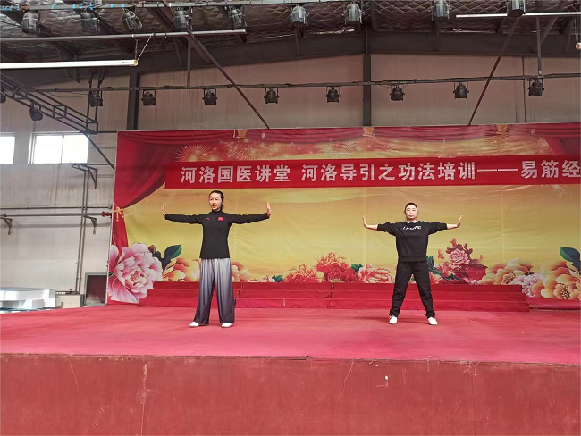 近日,针灸推拿系联合学院团委邀请洛阳市健身气功协会会长、国家级指导员、国家级裁判员祝京媛来我院开展河洛导引——易筋经培训,学院100余名师生参加培训学习。