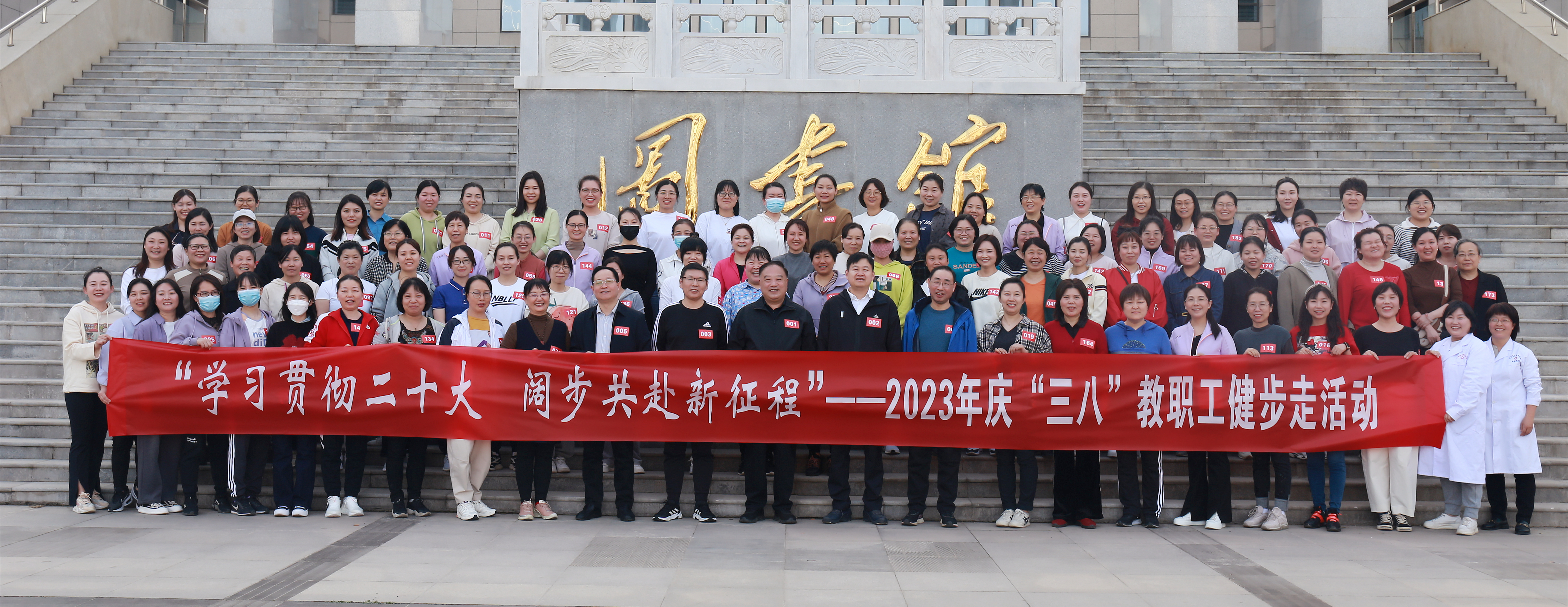 3月8日下午,学院工会组织开展了以“学习贯彻二十大,阔步共赴新征程”为主题的庆“三八”教职工健步走活动。学院党委书记韦保新,院长彭新,党委副书记杜占彪,副院长王轶群、李中良及200余名教职工参加。