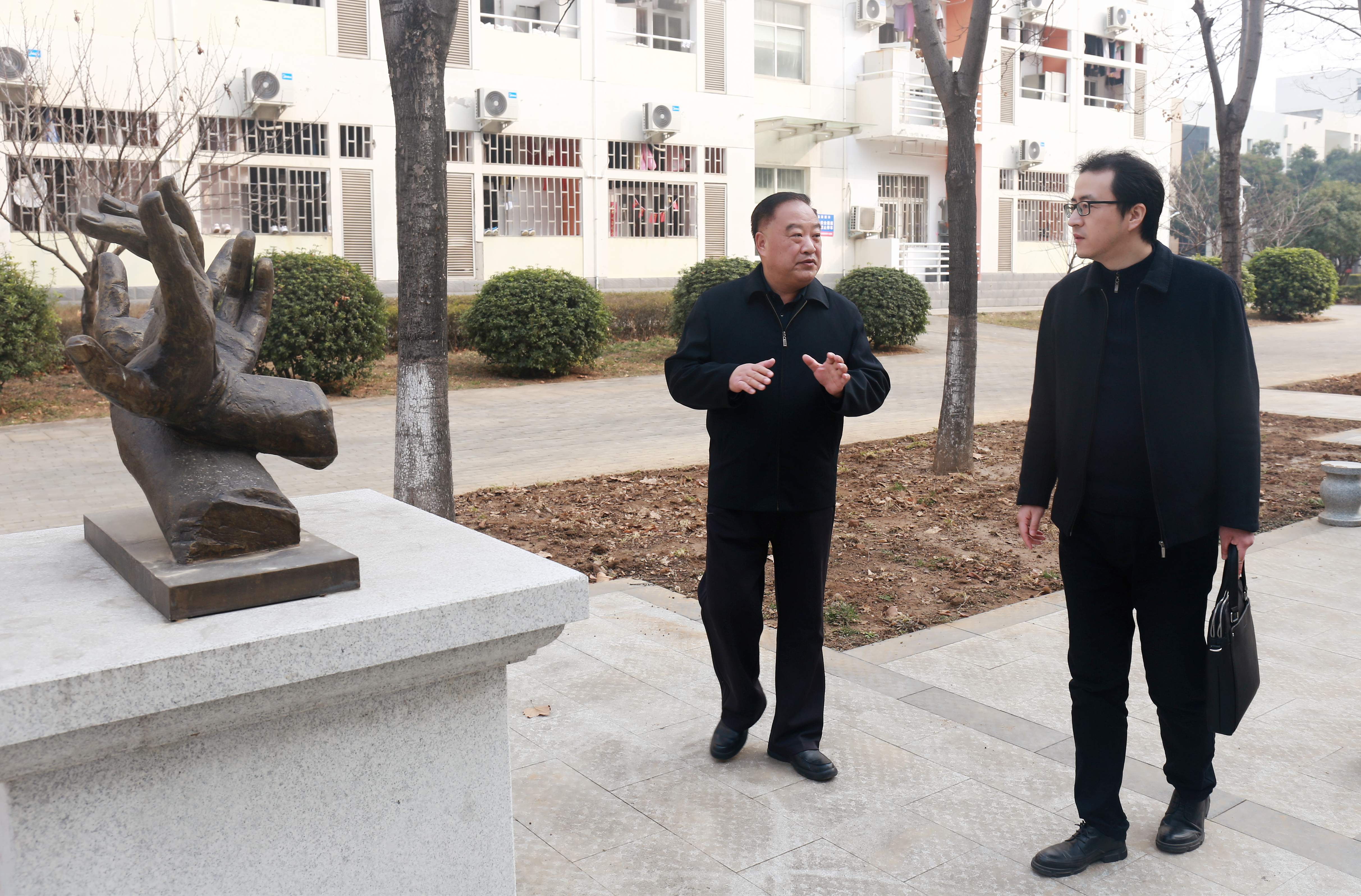 黄亮一行先后参观了河洛推拿文化校园、河洛中医药文化馆和校史馆,并对我院浓厚的中医药文化氛围表示赞赏。随后,在二楼会议室进行了座谈,双方就如何坚持平台思维,推进中医药文化传承创新和产业化发展进行详细探讨和交流。会上,宣传部对2022年河洛中医药文化研讨会成果及利用情况进行了汇报。韦保新同志介绍了我院近年来河洛中医药文化研究建设成果以及面临的问题,同时,希望市政府高度重视河洛中医药文化,加强顶层设计;组织高等院校、科研单位、企业等,成立专门研究机构;组织相关人员,挖掘、收集和整理河洛中医药文化有关资料;利用新媒体加强河洛中医药文化宣传;加强河洛中医药文化与文旅文创、康养产业、中草药种植产业结合;推进中医药文化进社区进校园,普及河洛中医药文化。黄亮表示,河洛中医药文化是一张重要的、亟需挖掘的洛阳文化品牌,希望学院继续发挥洛阳特色中医药文化优势,共同为促进我市中医药事业、产业、文化“三位一体”融合发展,做出积极的努力。