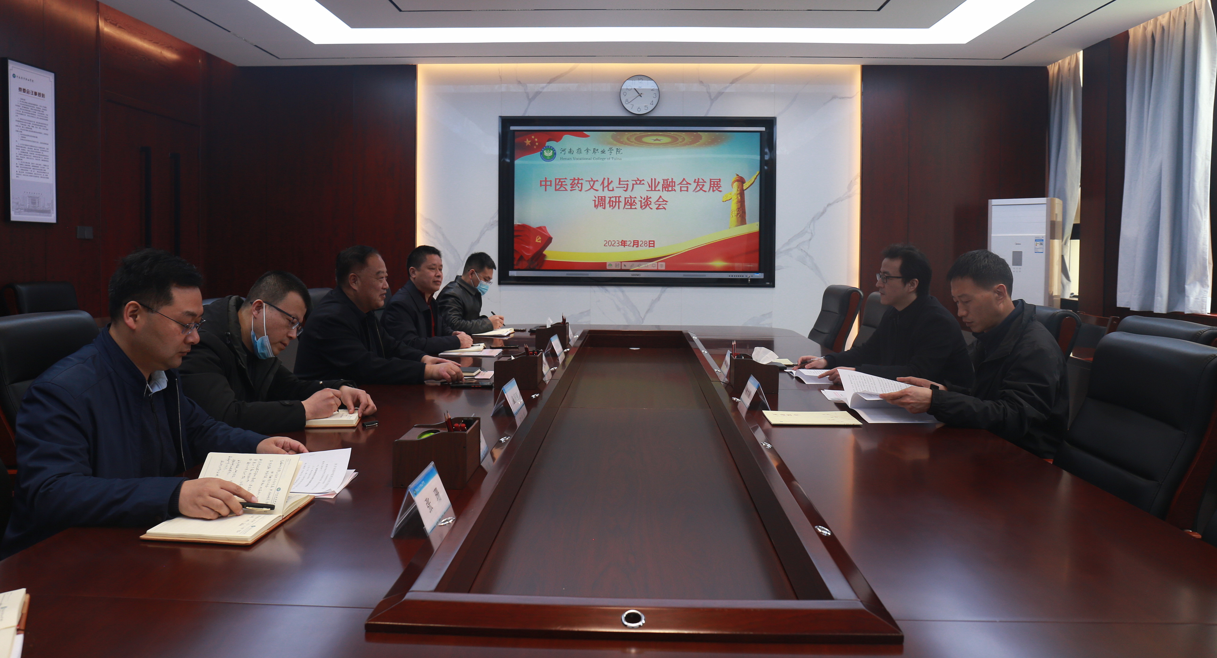 2月28日,洛阳市政府研究室(洛阳市政府发展研究中心)副主任黄亮、研究二科科长狄大闯到我院开展以加强中医药文化与产业融合发展为主题的调研交流。学院党委书记韦保新,相关部门负责同志参与调研。
