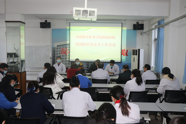 1月18日上午,附属医院在五楼会议室召开疫情防控及安全工作专题会议,学习传达涧西区卫健委关于当前疫情防控形势的通报,落实部署学院及上级卫生部门疫情防控工作精神和要求,医院全体人员参加会议。