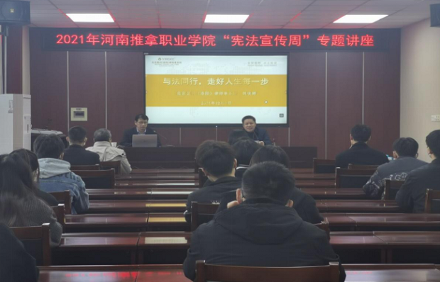 今年12月4日是第8个国家宪法日。为弘扬宪法精神,维护宪法权威,增强师生法治意识,12月3日下午,学院开展了“宪法宣传周”专题讲座。本次讲座由院长办公室和团委联合主办,邀请了魏俊卿律师担任主讲人,部门相关负责人及60余名学生代表参加。