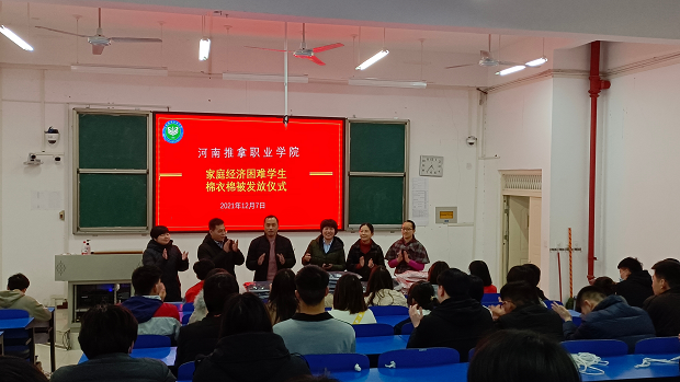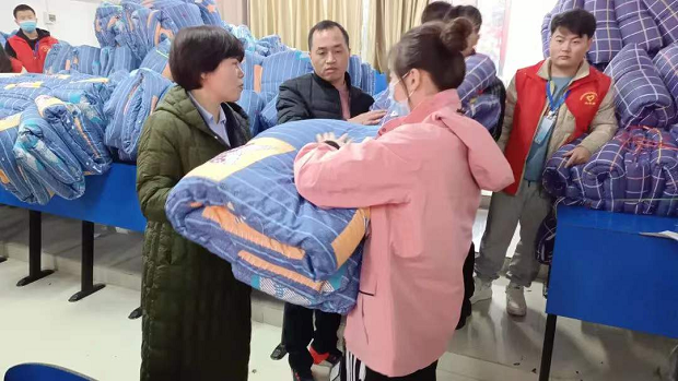 为把党和国家对家庭经济困难学生的关怀落实落细,切实做好精准帮扶和资助育人工作,确保学生温暖、舒心过冬,12月7日下午,学院在综合楼第十阶梯教室,组织开展了“冬季送温暖活动”。学生工作部、特殊教育中心负责人及部分辅导员到场为88名受助学生发放了崭新的棉衣、棉被褥,为家庭经济困难学生送上了一份冬日暖阳。