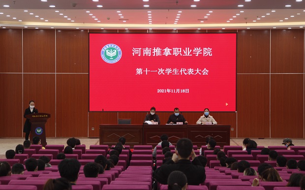 11月18日上午,河南推拿职业学院第十一次学生代表大会在图书馆报告厅召开。按照学院疫情防控要求,大会通过“线上+线下”形式开展。学生工作部部长陈军、副部长李海可,团委副书记马珊,针灸推拿系副主任夏征,护理系副主任韩雪红,团委委员,各系部团干教师以及学生代表参加会议。