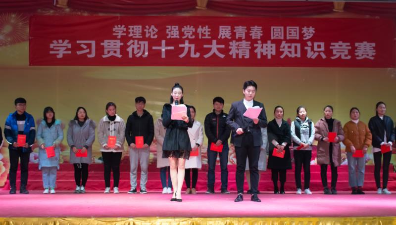 为进一步学习贯彻党的十九大精神,12月26日晚,院团委主办的十九大精神知识竞赛在学生活动中心举行。共有来自各个系部的5支队伍参赛。团委副书记马珊,团委委员到场并担任评委。
