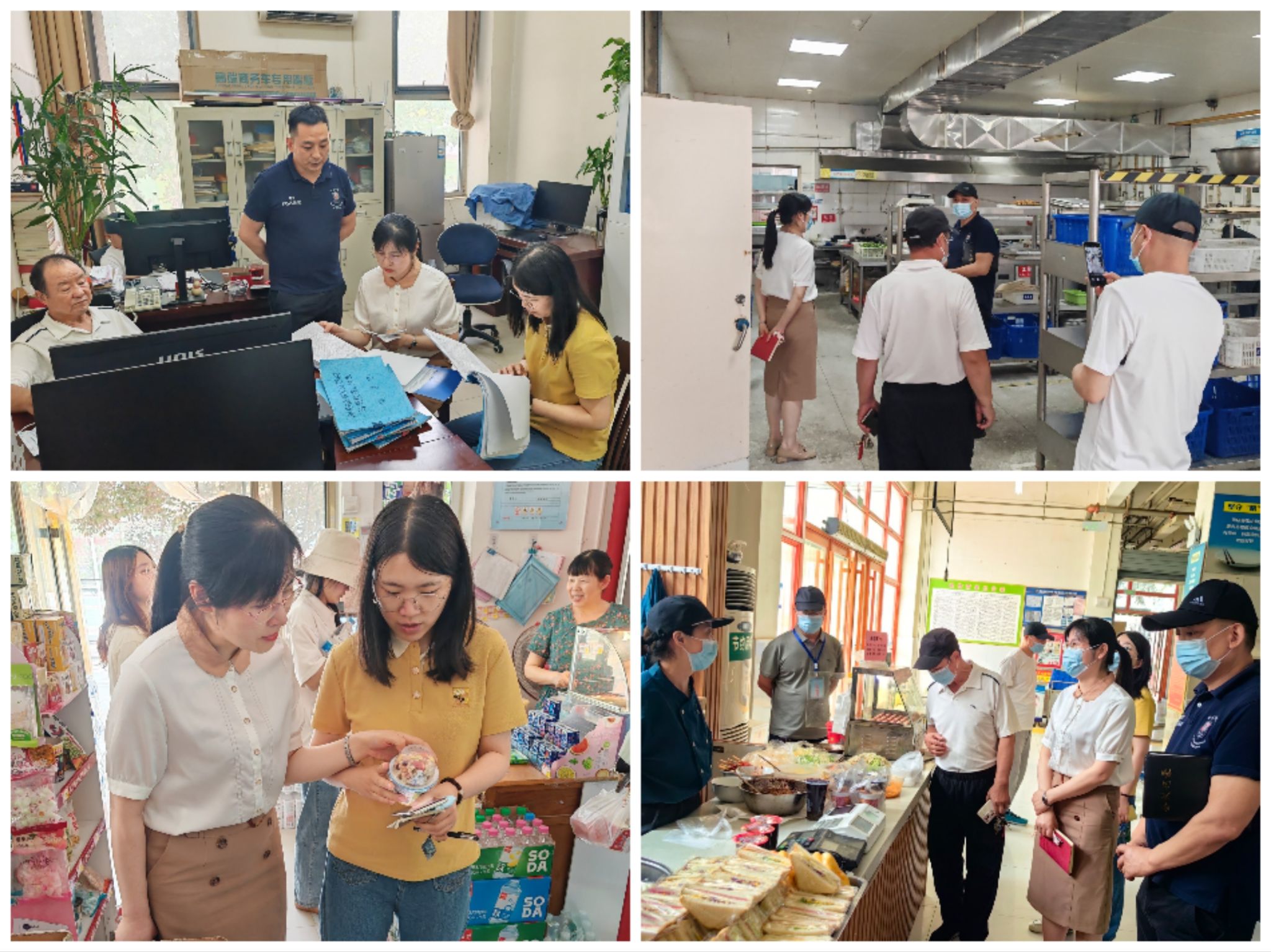 在学院食堂,检查组一行分别来到打饭窗口、切配间、烹饪区、留样区等操作区域,对窗口的卫生管理、食品的存放、烹饪加工环节以及食品留样等进行了检查,重点检查食品原料是否新鲜、操作区域是否干净卫生、食堂员工是否持健康证上岗、食品留样是否规范等情况。此外,检查组还查阅了食品购货凭证、进货台账、出入库清单等相关管理记录,询问了近期“我i河推”上学生反映的相关食品问题的处理情况。在校园超市,检查组认真查看在售商品的生产日期、保质期等情况,对是否销售“三无”“过期”食品进行重点检查。对检查中发现的问题,检查组当场提出了整改措施和意见,并要求立改立行。