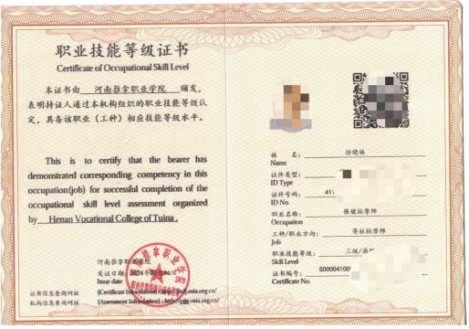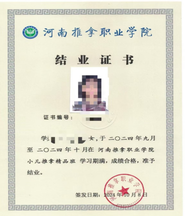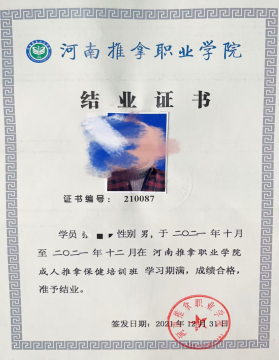 1.河南推拿职业学院结业证书。