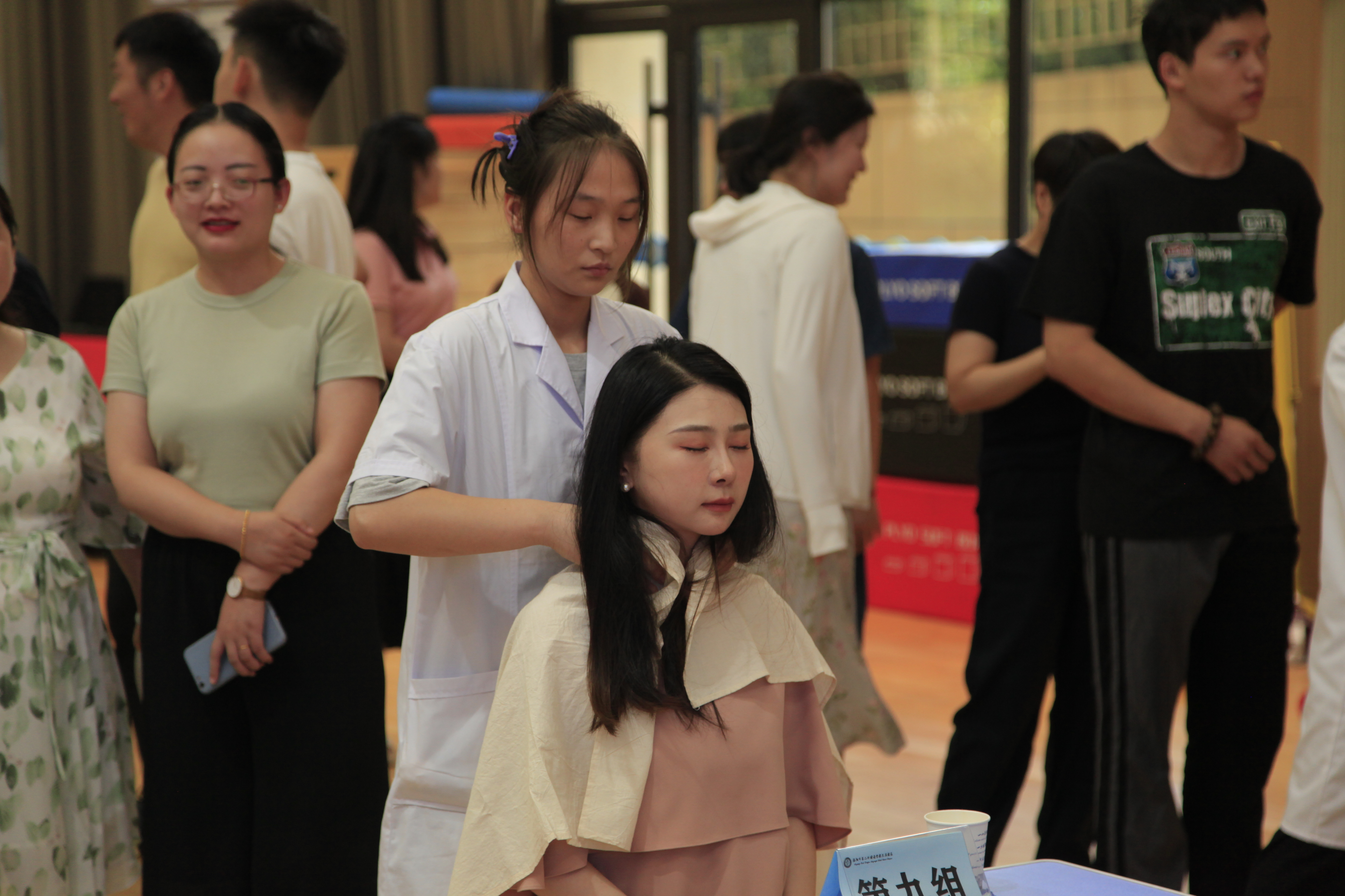 6月29日上午,学院党委宣传部、附属医院、针灸推拿系、康复系师生来到洛阳市第二外国语学校(兰溪校区)开展“中医药文化河洛行”志愿服务。志愿服务团队为学校的一百多名一线教师提供了现场义诊服务,更带来了河洛推拿、针灸等传统中医疗法。