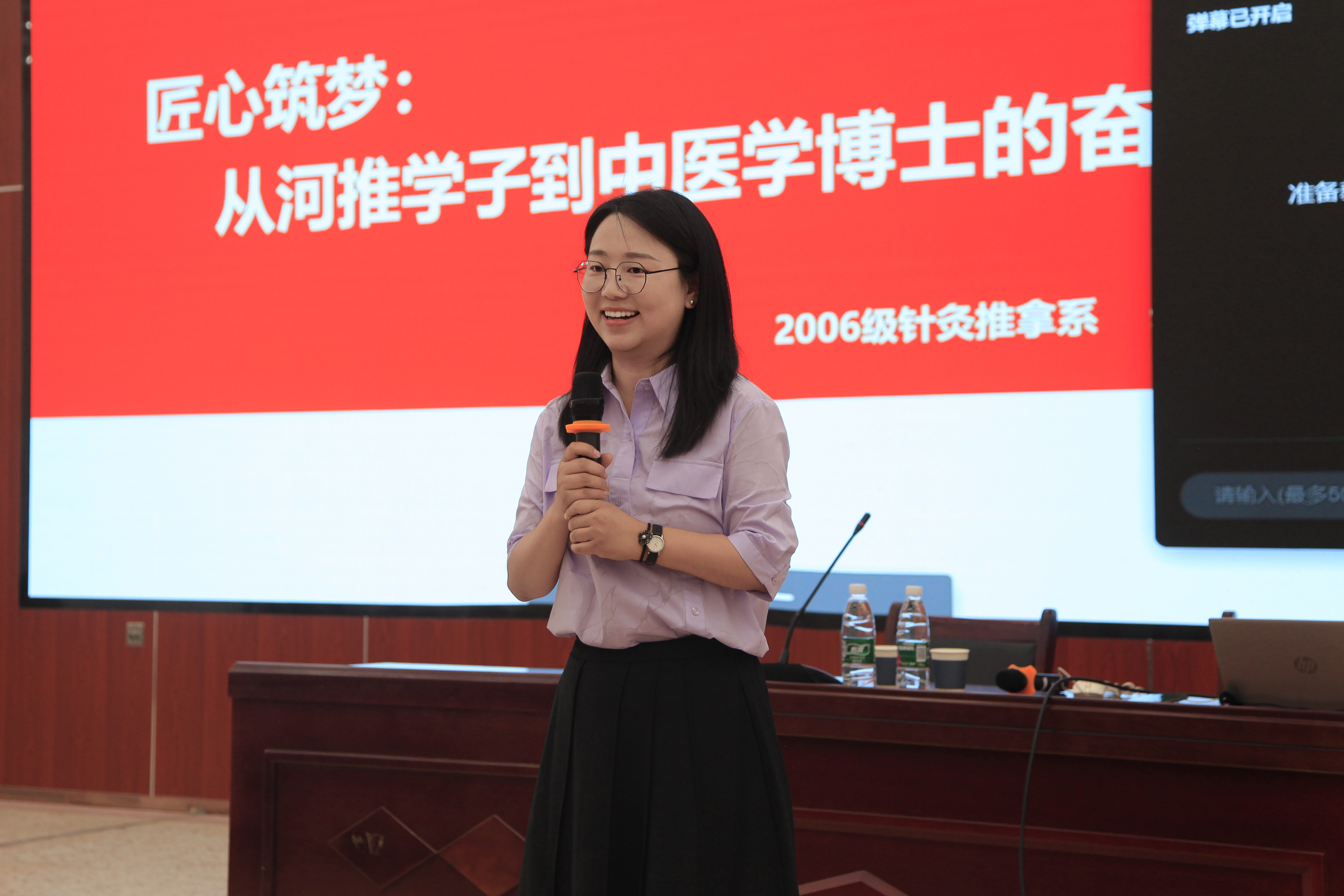 宋瑞雯是学院2009届优秀毕业生,天津中医药大学中医学博士,现任天津中医药大学硕士研究生导师。本次讲座以“匠心筑梦:从河推学子到中医学博士的奋斗之路”为题,回顾了她在河推校园的学习经历,讲述了她如何从一名河推学子成长为中医学博士的成长历程,并勉励学弟学妹要珍惜当下,但行好事,莫问前程。会后,宋瑞雯与学生开展深入交流。