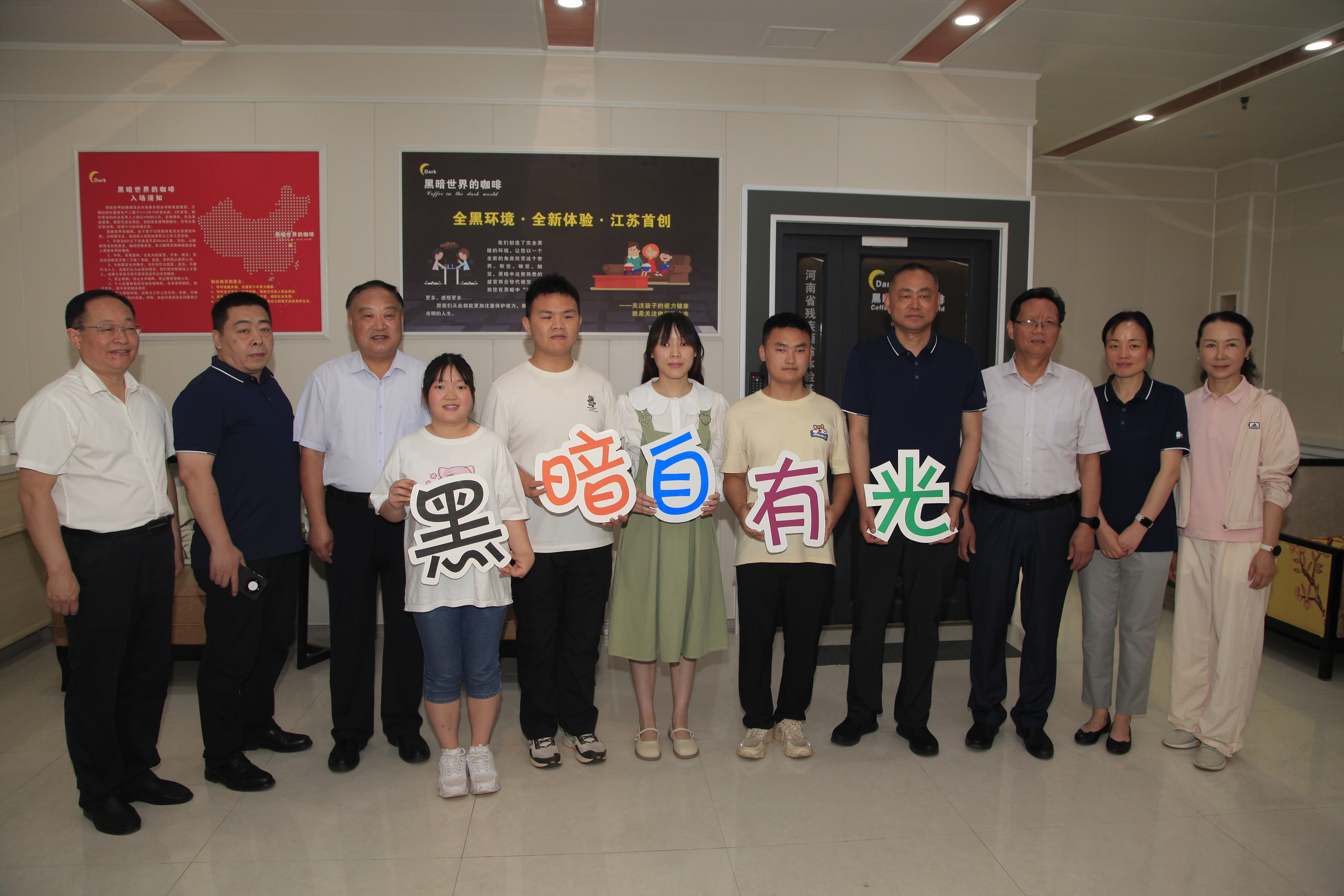 调研组一行首先来到学生活动中心健身气功八段锦教学现场,通过深入课堂、听取介绍、现场交流等方式,详细了解我院健身气功课程开设及教学活动开展情况。课后,与师生进行了亲切交流,董军指出,健身气功教师应创新教学方法,针对特殊群体采用特殊教法,做到因材施教。他勉励同学们进一步加强功法学习,提高身体素质,推动学业进步。随后,调研组一行来到善修园,饶有兴趣地参观中医“六艺”雕塑,高度赞扬我院中医药文化景观及文化氛围,积极肯定我院在推动“河洛导引”全民健身运动中的成绩。在黑暗世界的咖啡体验馆,调研组一行亲身感受盲人的黑暗世界,在与盲生引导员的交流中了解到学院对接受特殊教育学生的帮扶政策,充分肯定了学院对盲残学生的关心支持和教育培养工作。