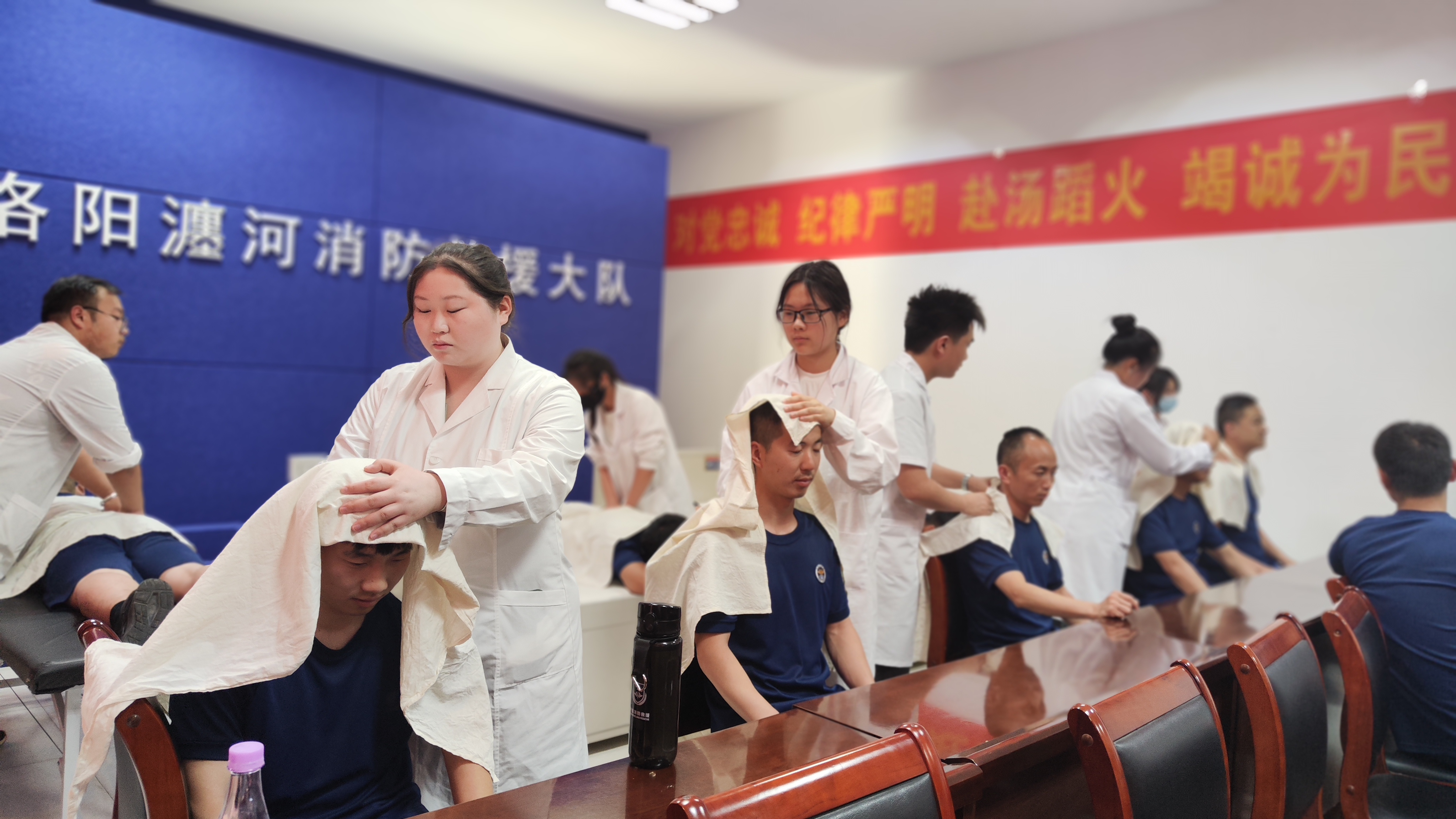 为大力培养高素质技能人才,助力发展新质生产力,积极倡导技能文明、技术成才,积极弘扬劳模精神、劳动精神和工匠精神,按照学院2024年职业教育活动周有关活动安排,5月14日下午,针灸推拿系组织师生义诊小分队深入市交警七大队、瀍河区消防救援大队、舒心苑老年公寓开展河洛推拿义诊志愿服务。