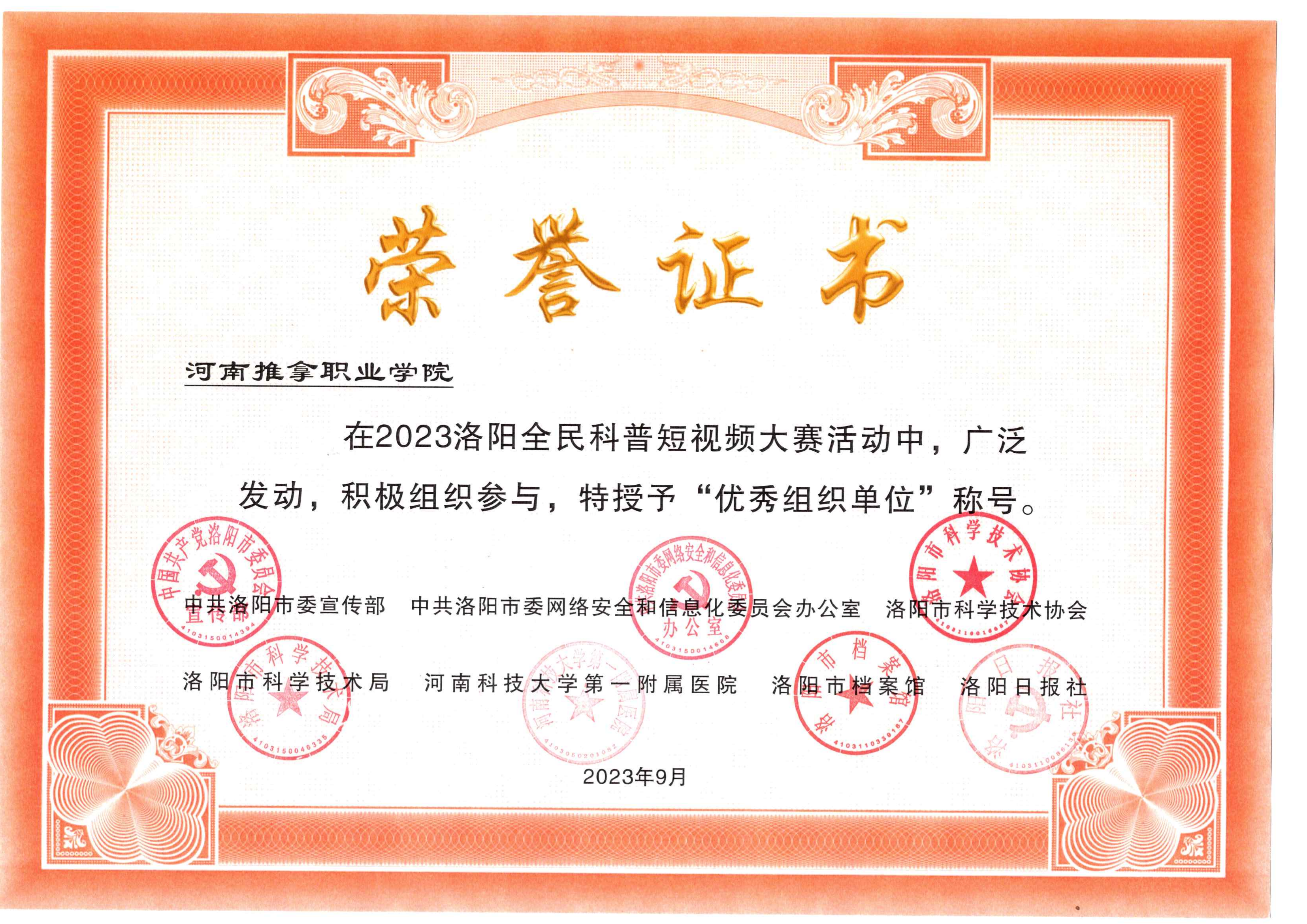 日前,由市委宣传部、市委网信办、市科技局、市科协、河科大一附院、市档案馆、洛阳日报社等组织开展洛阳科普短视频大赛活动结果揭晓。我院被授予“优秀组织单位”,燕鑫老师的作品《河小推带你云上学本草》荣获三等奖,同时他获评2023-2024年度“科普洛阳宣传达人”荣誉称号。