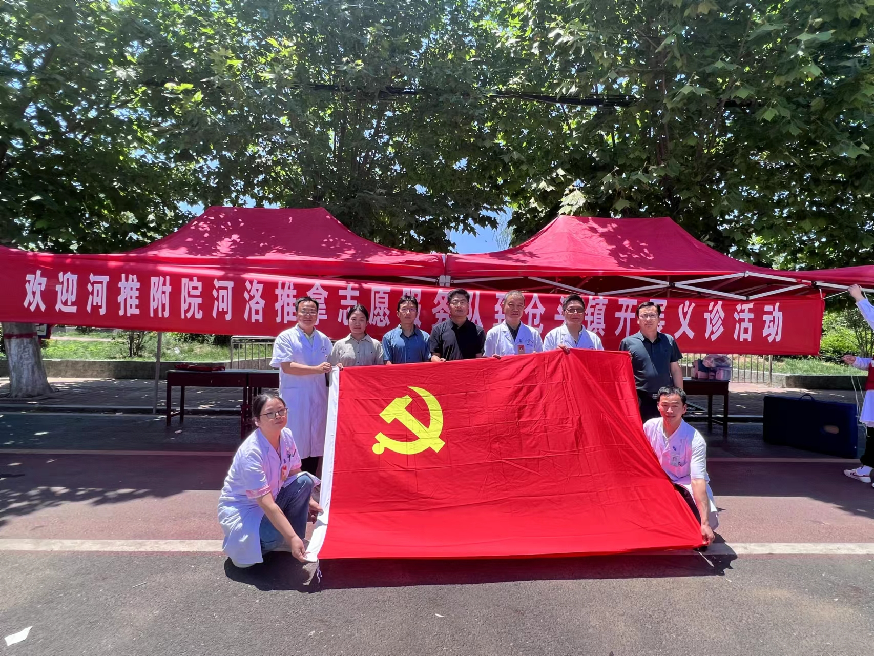 为深入学习贯彻党的二十大精神,持续学习贯彻习近平新时代中国特色社会主义思想主题教育走深走实,6月9日上午,附属医院党支部在支部书记刘国宝的带领下,组织部分党员、入党积极分子6人前往新安县仓头镇开展“传承精华、守正创新,助力全民健康”主题党日暨脊柱健康义诊活动下乡义诊活动。
