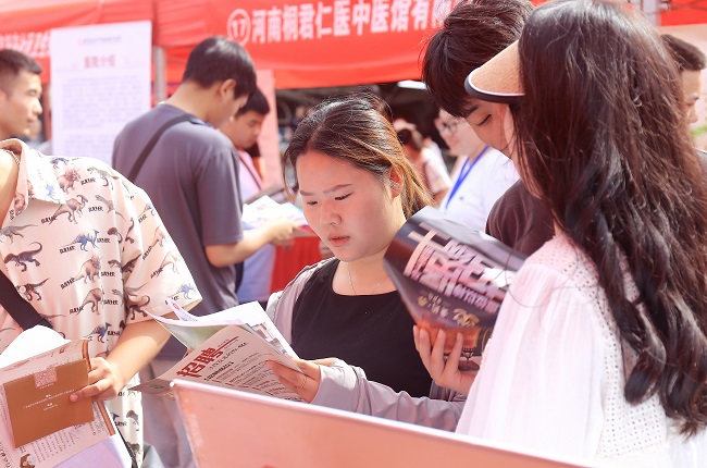 6月15日上午,烈日炎炎,学院河洛推拿广场一片“火热”景象,2023年毕业生就业双选会如火如荼地进行着。来自北京、河南、浙江等地的130余家用人单位入场揽才,吸引众多应届毕业生前来求职应聘,涵盖医药卫生类单位及健康类产业等各种类型,卫生类企业占比50%,提供岗位数4000余个,提供岗位数与未就业学生人数比远大于3:1。