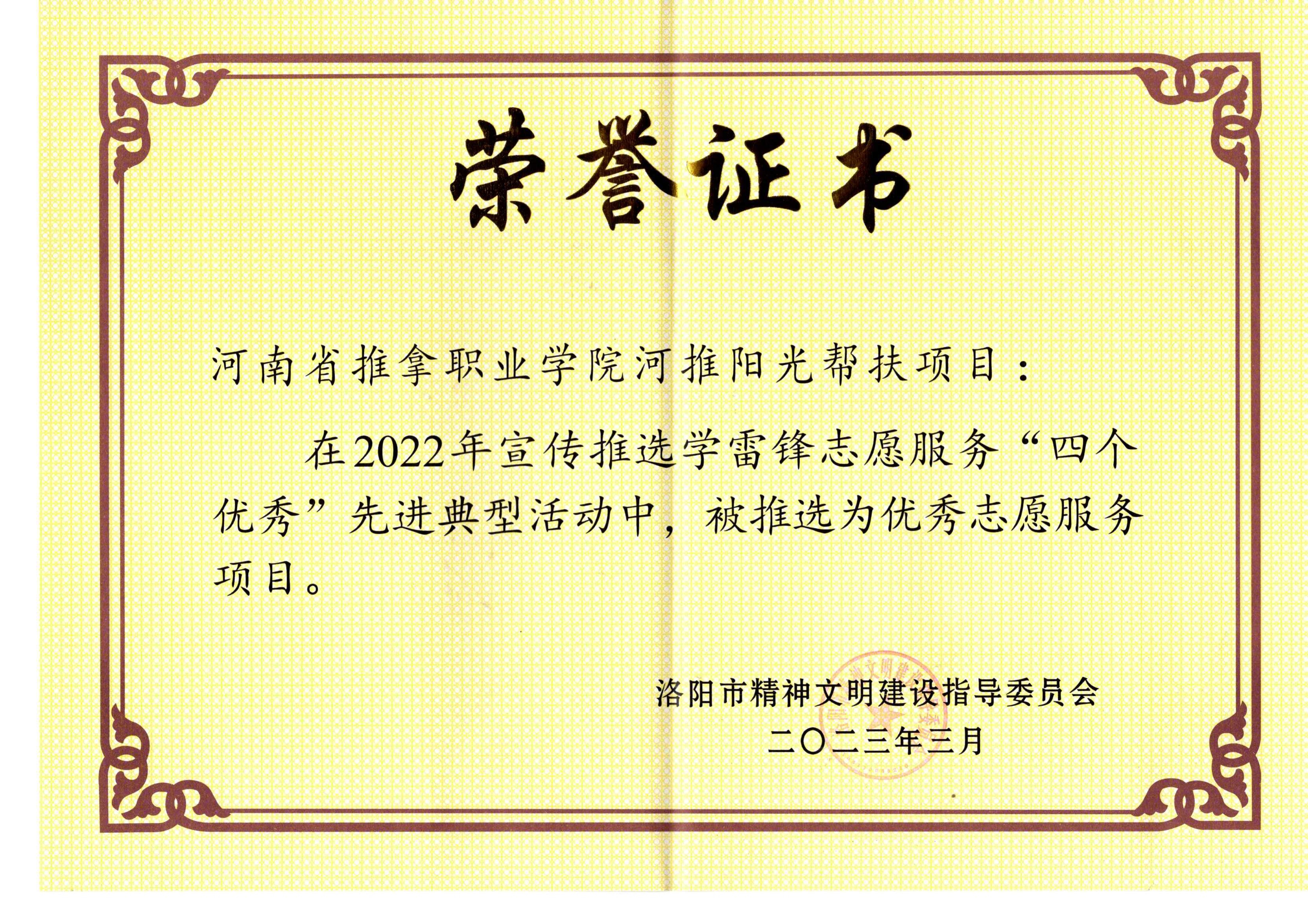 我院高度重视精神文明建设和志愿服务工作,注册志愿人数3452人,每年通过政策宣讲、卫生清洁、健康义诊、交通助岗、文艺支教等形式,参与洛阳市地方文明城市创建、新时代文明志愿服务、学雷锋志愿服务等,积极践行志愿服务精神。先后荣获河南省、洛阳市文明志愿组织、项目、个人7次荣誉称号。