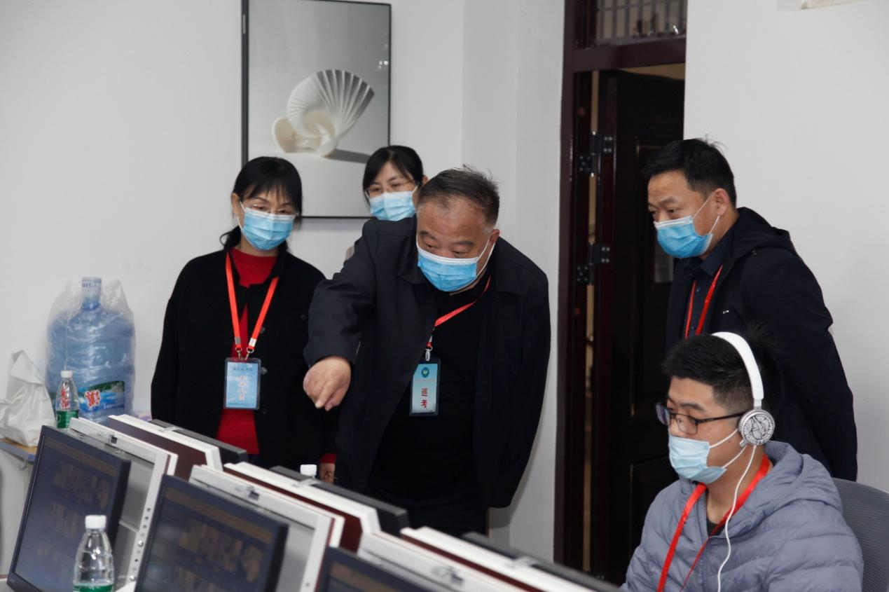学院党委书记韦保新、副院长王轶群以及相关部门负责人到现场巡考,详细查看考场安排情况、考生参加考试情况以及网络保障情况等。韦保新同志指出,一是要稳妥做好线上考场布置、监考、阅卷等工作,考试过程中严肃考试纪律,一丝不苟完成各项考务工作,保证公平公正。二是要统筹细化疫情防控、技术、人员等各类保障措施,尤其是保电保网络通畅,确保考试安全。