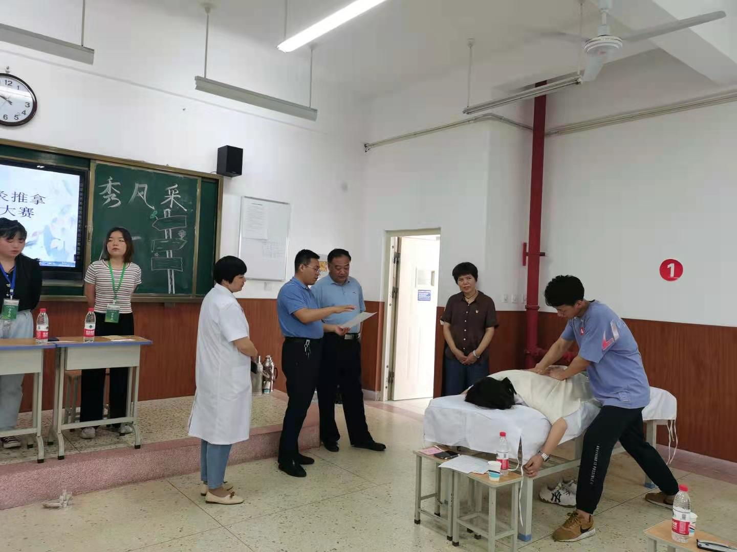 为贯彻国务院关于加快发展现代职业教育的决定,进一步推进以赛促学、以赛促教,创新实践教学体系,加强学生人文素质修养、提高学生针灸推拿基本技能,5月29—30日,针灸推拿系在综合教学楼举行2021年针灸推拿基本技能大赛。学院党委书记韦保新、教务处处长吴涛亲临现场并指导比赛。