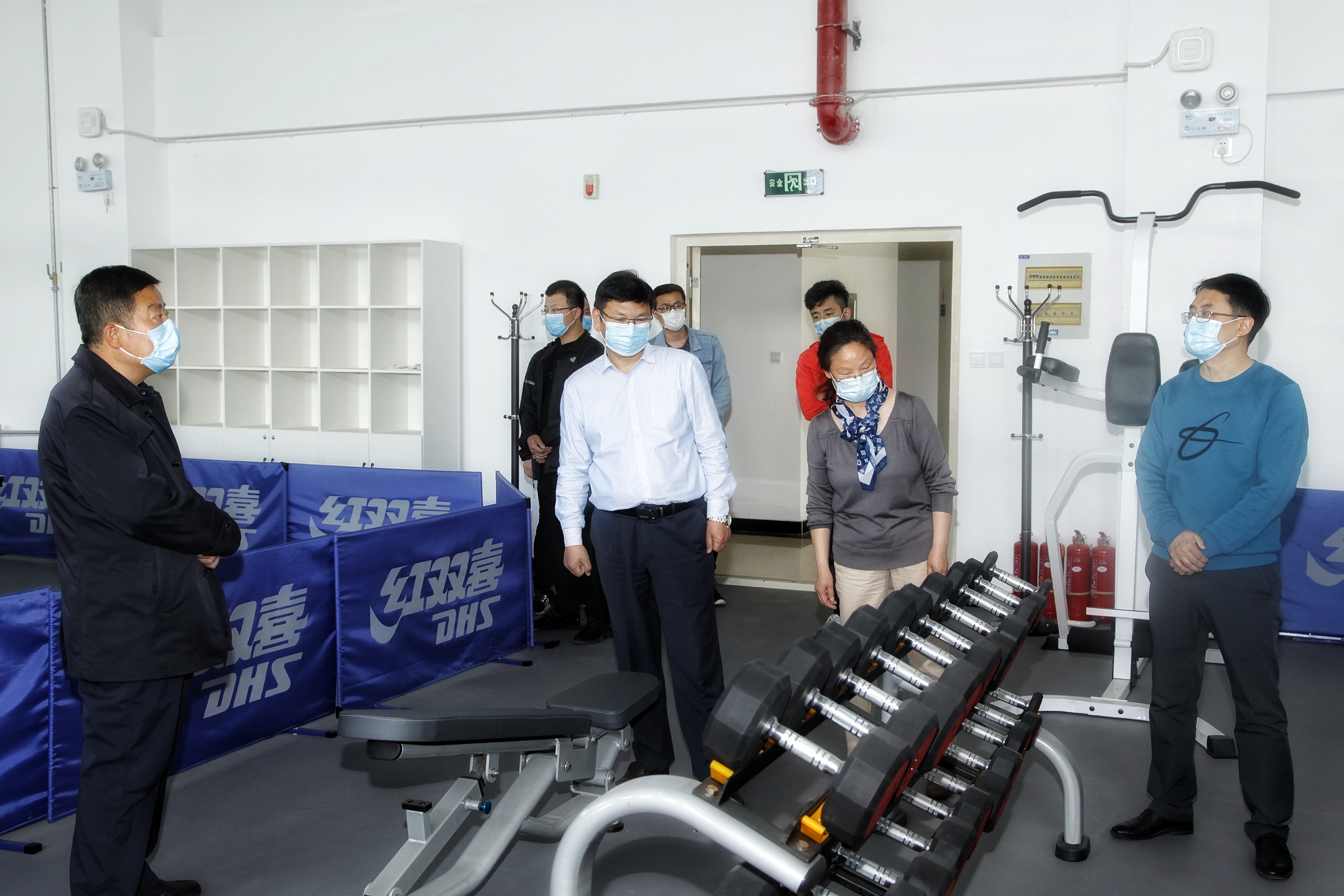 4月29日上午,党委副书记杜占彪、工会主席张志强、纪委书记李鹏涛检查指导职工之家和针灸推拿创新工作室返校复学准备工作,工会相关人员陪同检查。