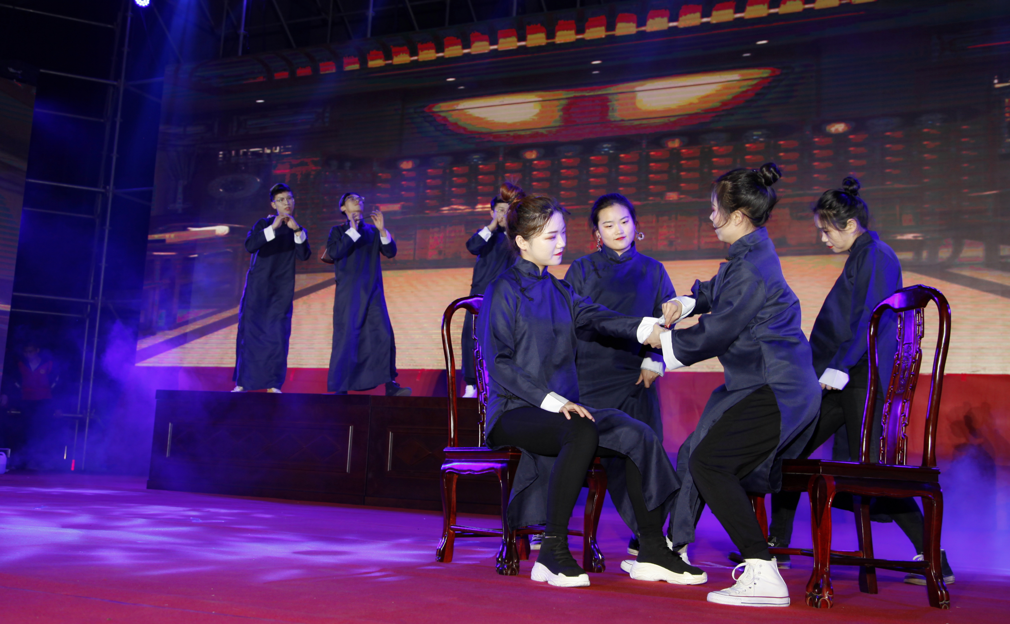 旌旗飘扬、气势恢宏,在融合了牡丹、剪纸、腰鼓豫晋陕三省特色的开场舞中,晚会拉开序幕。本场晚会以“推拿之苗萌发”“岐黄之火鼎盛”“中医之魂永驻”三个篇章展开,用朗诵、舞蹈、说唱、健身气功、河南坠子、民乐、舞台剧等形式,展现了学院60年来初心不改、薪火相传、弦歌不辍的奋进逐梦历程,上演了一场厚重典雅又极具特色的视听盛宴。