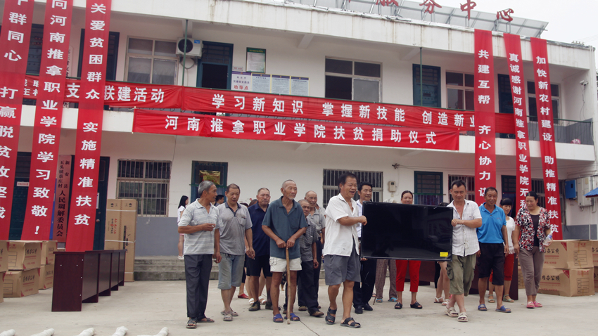 为认真贯彻落实中央、省委关于坚决打好精准脱贫攻坚战的战略部署,服务洛阳经济社会发展,7月17日上午,我院在新安县五头镇蔡庄村举行扶贫帮扶捐助仪式,向该村捐助了电视、太阳能路灯、桌椅等物品。院党委副书记、纪委书记王松泉,党政办公室主任燕书立和新安县政协主席樊栋梁,人大常委会副主任张春全,残联理事长张晓红等出席捐助仪式。