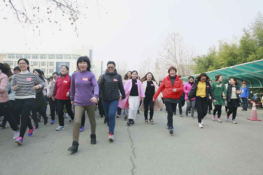 三月的河推,春风拂面,阳光明媚。随着发令枪响,活动正式拉开帷幕,女子组率先出发,男子组紧随其后。参加活动的教职工并肩同行、阔步向前,说变化、谈发展,全程热闹非凡,笑语不断,欢快动感的场面与初春的校园融成了一幅和谐宜人的美丽画卷。