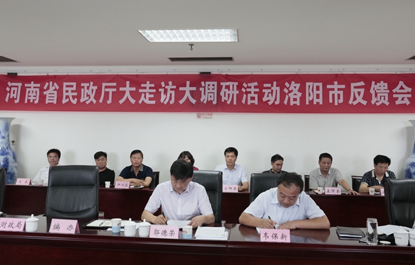 7月6日上午,河南省民政厅召开基层民政服务机构大走访大调研活动第18调研组洛阳市反馈会。第18调研组组长、河南推拿职业学院党委书记韦保新,河南推拿职业学院工会主席张志强;洛阳市政府副秘书长郭德荣、洛阳市民政局局长张书卿出席会议。调研组成员及洛阳市民政、财政、编办、安监、消防等部门负责人和县(市、区)政府主管领导参加会议。会议由张书卿同志主持。