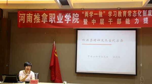 为深入推进“两学一做”学习教育的常态化制度化,打造一支忠诚干净担当的高素质干部队伍。7月10日至14日,我院在安阳林州市举办了推进“两学一做”学习教育常态化制度化暨中层干部能力提升培训班,学院领导班子成员,全体中层干部及思政课教师参加了培训。