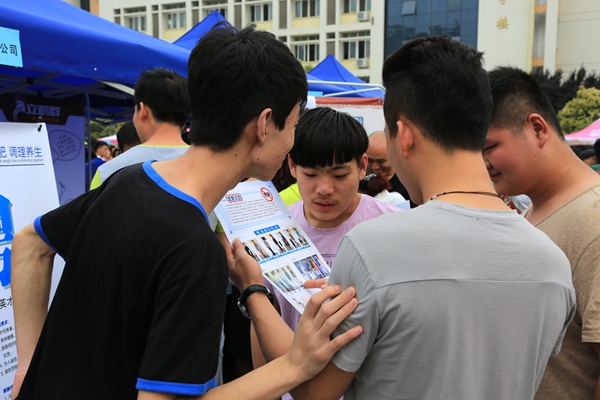 上午8时,双选会还未开始,现场已是摩肩接踵,其实,在看完用人单位的招聘宣传册后,不难发现他们开出的薪资待遇都较高:“保底4500、月薪4000——8000、底薪3500+提成、提供食宿、定期培训……”,但是他们却不满足于在固定位置前等待学生上前,而是主动走向求职学生,了解他们的求职意向,并主动告知提供的岗位、薪资待遇、就业前景等。虽然现场学生众多,但他们还是使出浑身解数招揽,求贤若渴,这也从一个侧面说明了学院针灸推拿等骨干专业在就业市场上的受欢迎程度。