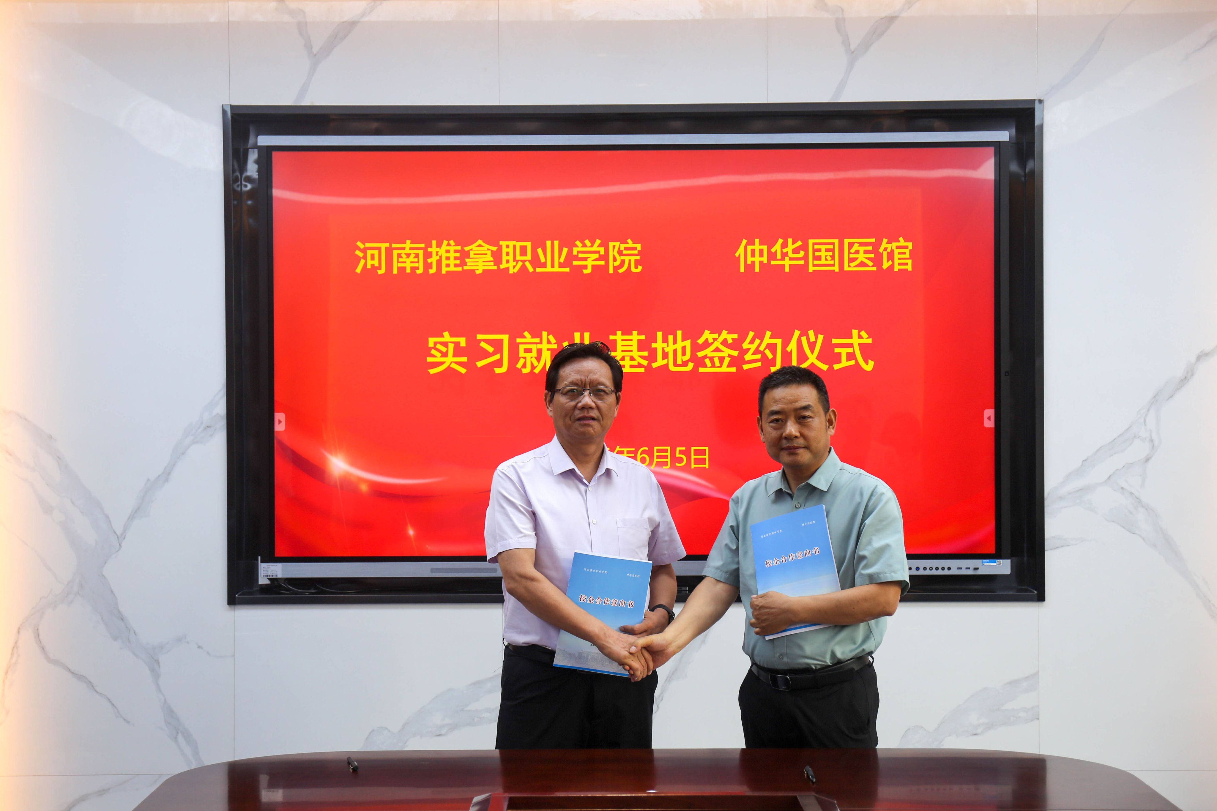 6月5日芒种时节,我校与仲华国医馆合作意向签约仪式在行政楼204会议室成功举行。校长陈相新、副校长宋朝功、纪委书记陈德炤出席仪式,与仲华国医馆董事长轩辕仲华一行进行了深入交流。教务处、招生就业处等相关部门负责人参加了签约仪式。