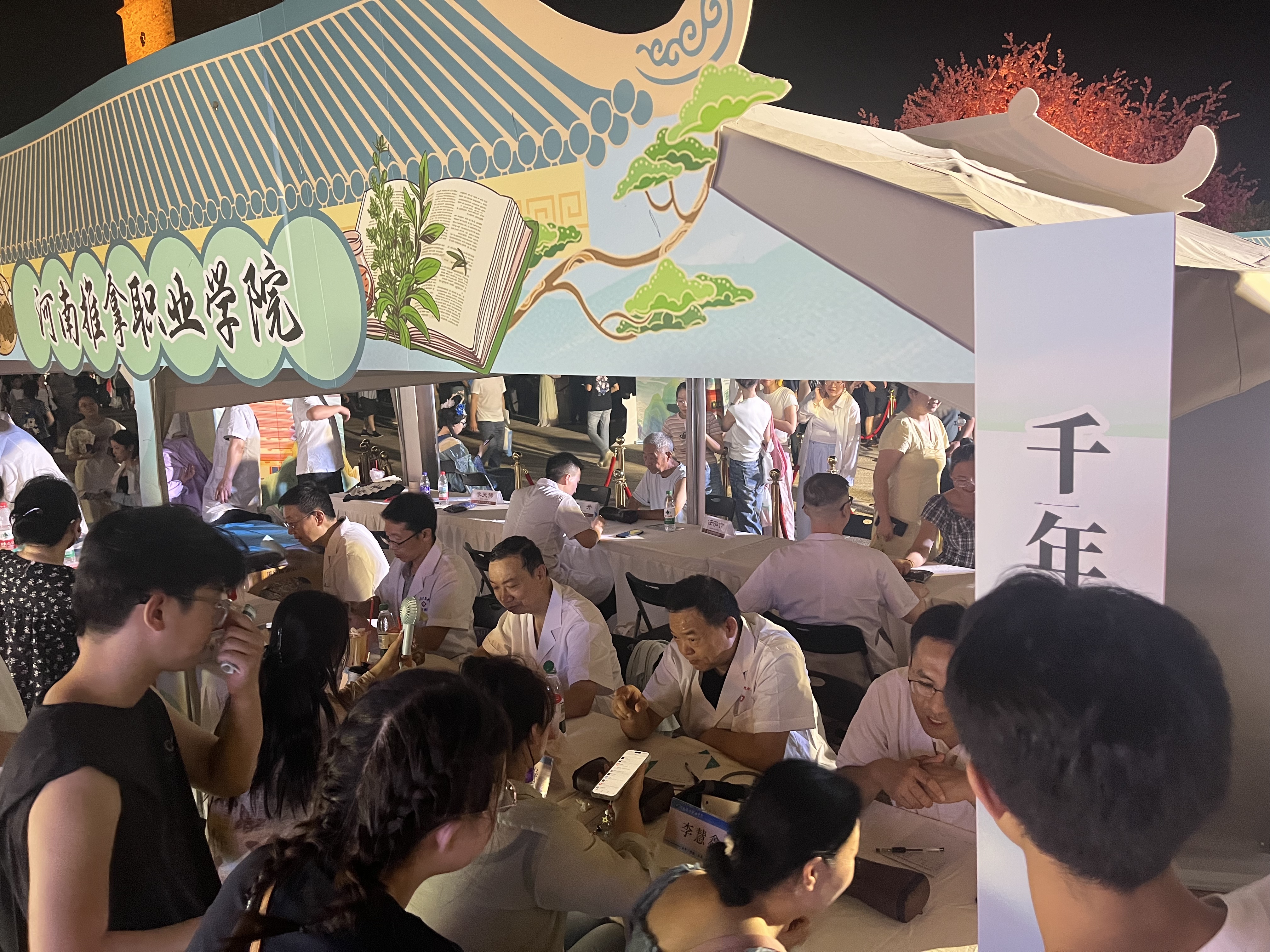 为深入学习贯彻习近平总书记在河南考察时重要讲话精神,大力弘扬中医药文化,推进“中医药+文旅”融合,7月25日至26日,河南省卫生健康委员会主办的“千年中医药 潮起正当时”2025年省级中医药文化市集活动在洛阳市洛邑古城隆重举行。我校作为协办单位之一,通过义诊互动、中医药技法展示等形式,向广大群众展示了中医药的独特魅力。