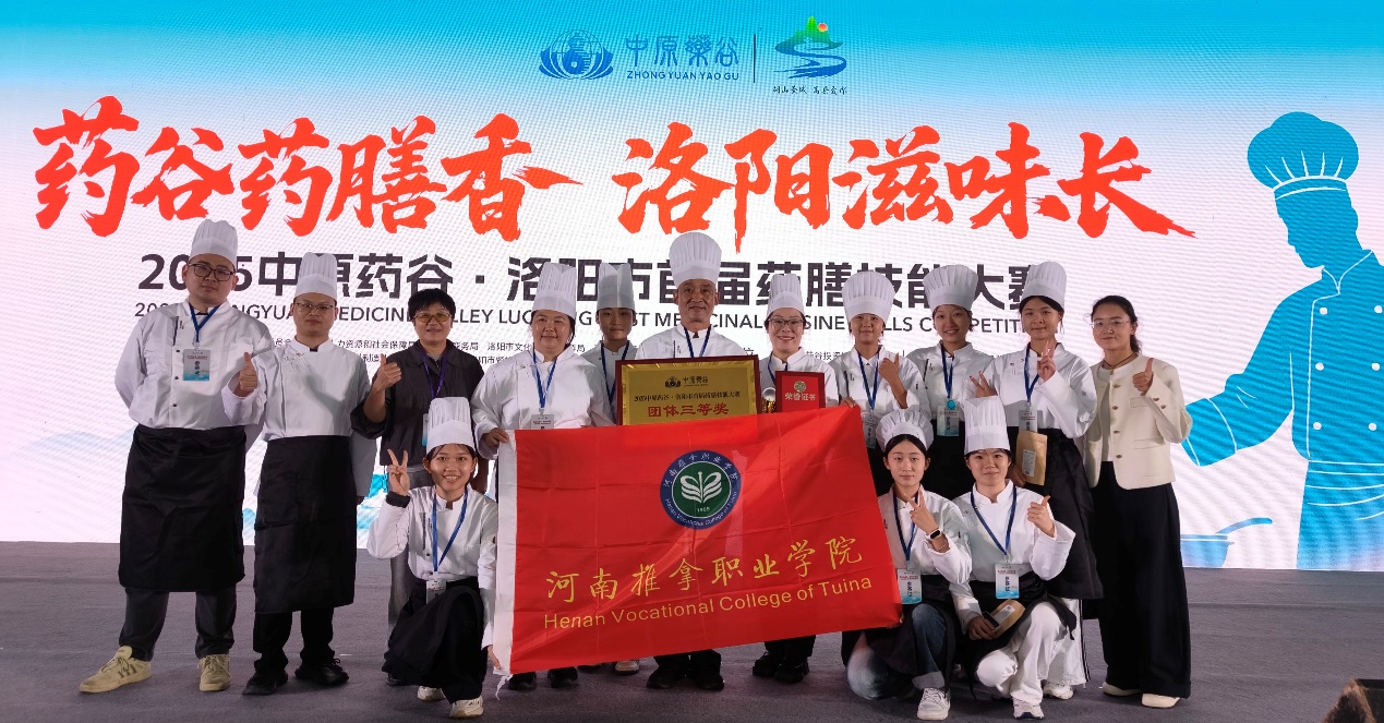 10月1日,在2025中原药谷・洛阳市第一届药膳大赛上,河南推拿职业学院师生团队凭借出色的组织与精湛的技艺,一举斩获团体三等奖、个人三等奖及优秀组织奖三项荣誉。