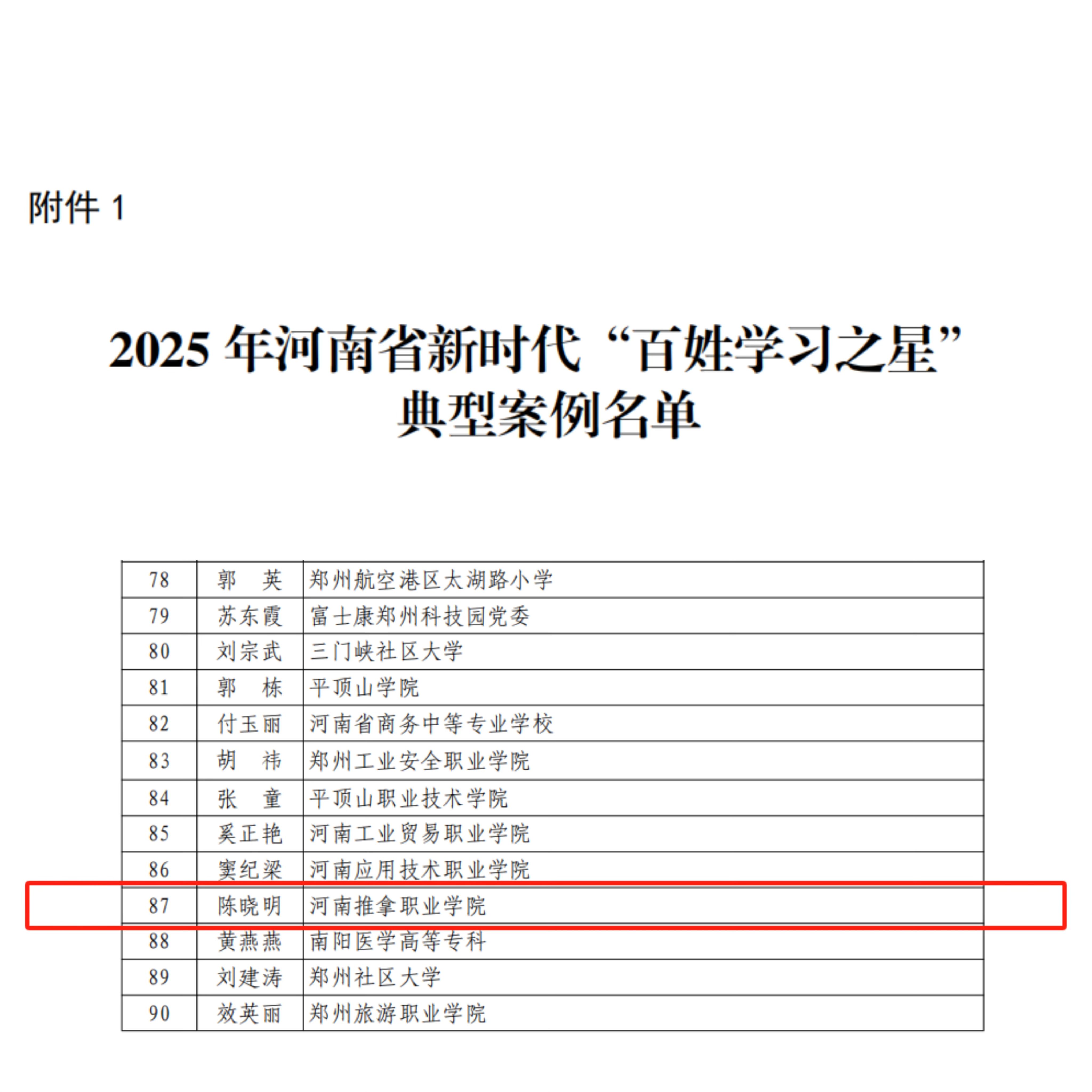 近日,省教育厅2025年河南省新时代“百姓学习之星”和“终身学习品牌”典型案例推介活动结果揭晓,认定120个河南省新时代“百姓学习之星”典型案例,河南推拿职业学院附属医院教职工陈晓明入选。