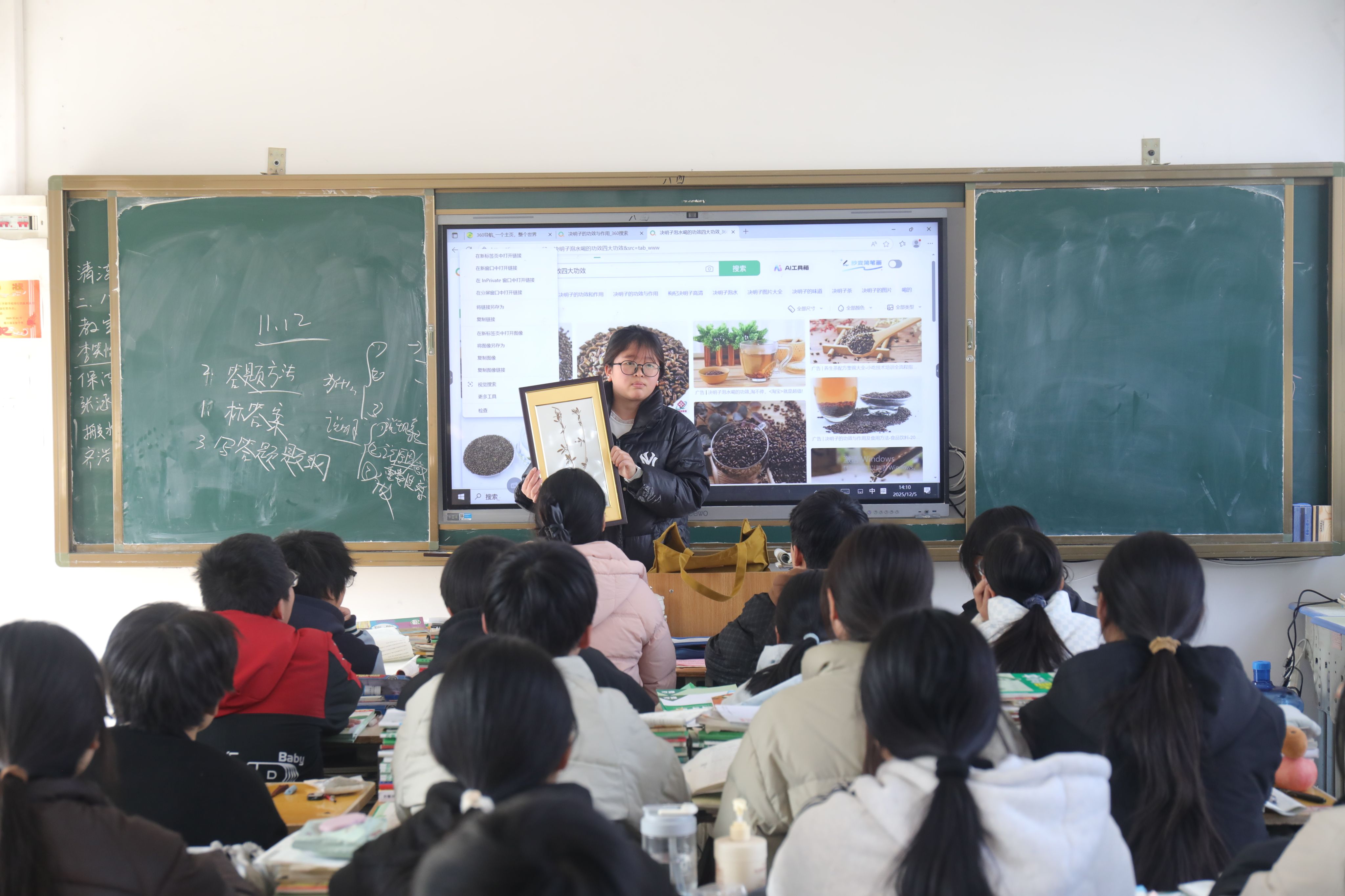 在缑氏镇玄奘中学的教室里,中药系志愿者们手拿一株株菊花、决明子等中药标本,娓娓道来每一味药材背后的文化内涵与药用价值,开展了一场别开生面的中草药科普讲堂。“这不仅是治病的药,更是古人智慧的结晶!”同学们全神贯注地聆听志愿者讲解。随后的有奖抢答环节更是将气氛推向高潮,同学们踊跃抢答,赢取精美的中医药小礼品,现场热闹非凡,欢声笑语不断。