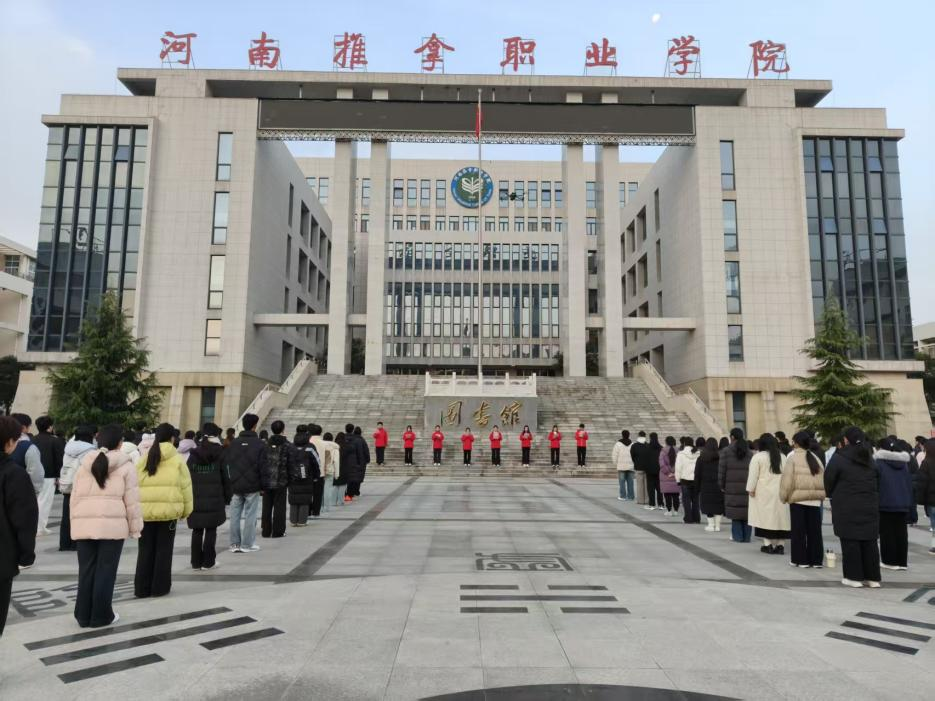 12月8日清晨,我校在河洛推拿广场举行升国旗仪式暨宪法教育主题活动。教师及学生代表共200余人参加。