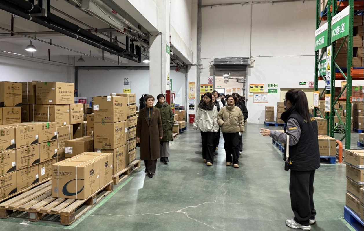 师生一行深入企业生产、仓储、质检及物流等一线部门进行实地观摩。在洛正药业,师生参观了符合GMP标准的中药制剂生产车间,实地了解药品生产流程,对中药制剂的生产工艺形成更直观的认识,也对中药赋能临床治疗的独特优势有了更深体会。在华润洛阳医药,师生走访了现代化仓储物流中心,亲身感受智能化管理系统在药品流通过程中的高效运作。企业相关负责人热情接待,并就行业发展趋势、人才需求特点及岗位能力要求等内容与师生展开交流。