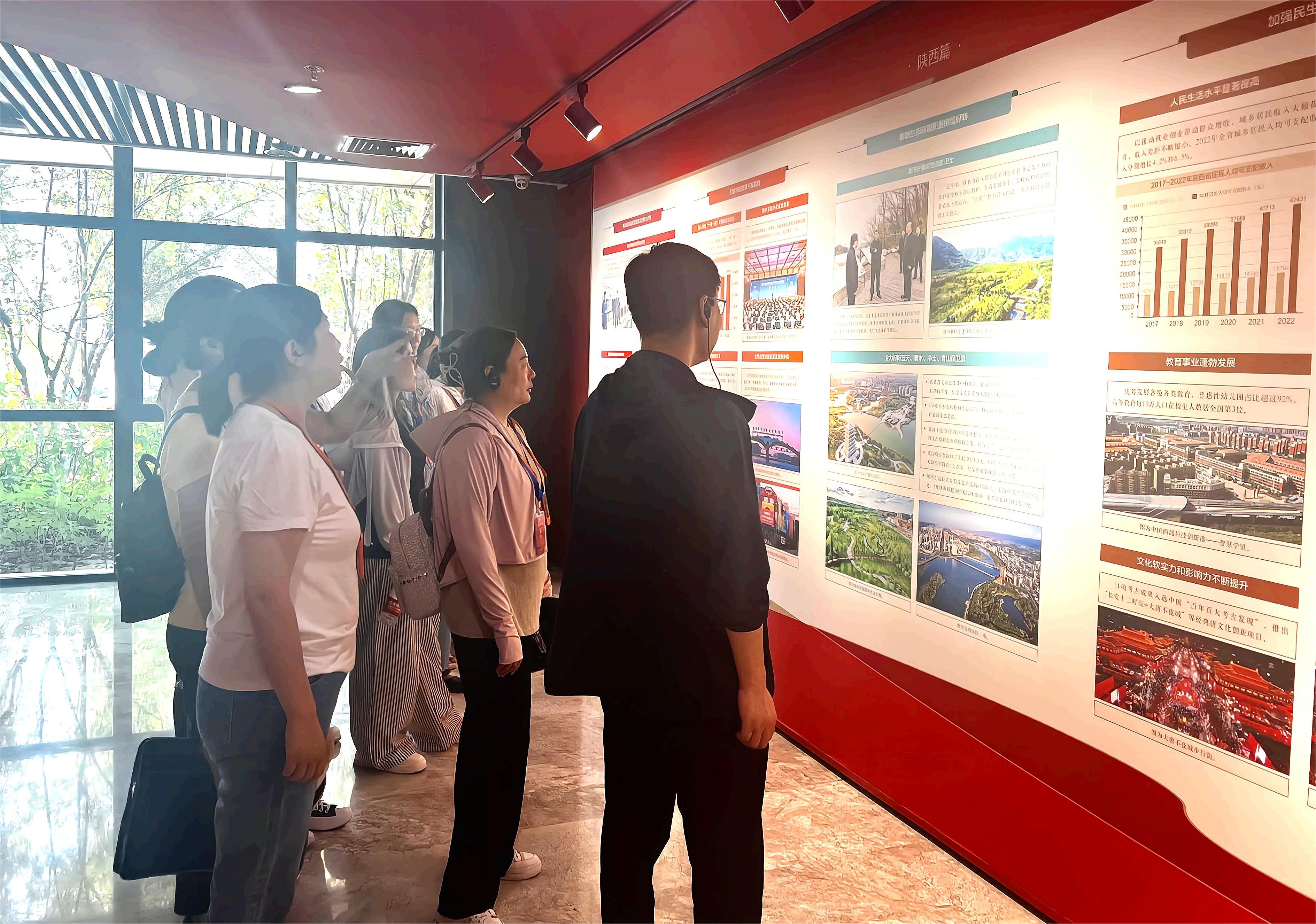 延安革命纪念馆,王家坪、杨家岭革命旧址,诉说着老一辈革命家光荣的奋斗史。在这里,中国共产党的革命先辈,用心中的理想与信念,在半山腰的窑洞里点燃一盏盏油灯,照亮一个个不眠之夜,也摇曳着解放全中国的黎明之光。巍峨的宝塔山、枣园革命旧址和南泥湾大生产展览馆,深切反映了延安十三年是艰苦的十三年,奋斗的十三年。老师们被老一辈革命者自力更生、艰苦奋斗的革命事迹以及在极其艰苦的环境下对理想的不懈追求、对人民的无限深情以及对革命事业的执着和忠诚深深打动着。在梁家河村,老师们先后参观了梁家河村史馆、知青旧居。在习近平总书记带领村民打下陕西省第一口沼气池旁,建起的全村第一个缝纫社、代销店、磨坊和铁业社原址等地,深刻感悟习近平总书记七年知青岁月中艰苦奋斗、勇于创新、为民服务的初心与使命。来到延安人用延安精神建设延安的新窗口——延安学习书院,首先映入眼帘的是“依靠学习,走向未来”八个大字。老师们在讲解员的带领下依次参观了“阅读空间”、“中国梦”展厅、“正圆中国梦”展厅,这里的一句句话、一幅幅生动的照片、一段段生动的影像、一个个鲜活的事例,背后都有故事,都引人深思,催人奋进,也让老师们感受到党的创新理论走进实践、走进生活、走进大众,真正“飞入寻常百姓家”。“巍巍宝塔山,滚滚延河水。”延安实践研学虽然短暂,但给老师们留下了难以估量的精神财富。韦保新强调,一要学习革命历史。利用红色资源打造思政课“实景课堂”,重温革命历史,坚定历史自信,增强历史主动。二要弘扬延安精神。让红色血脉永赓续,延安精神代代传。三要坚定初心使命。坚持用党的创新理论武装头脑,指导实践,时刻牢记育人初心使命。