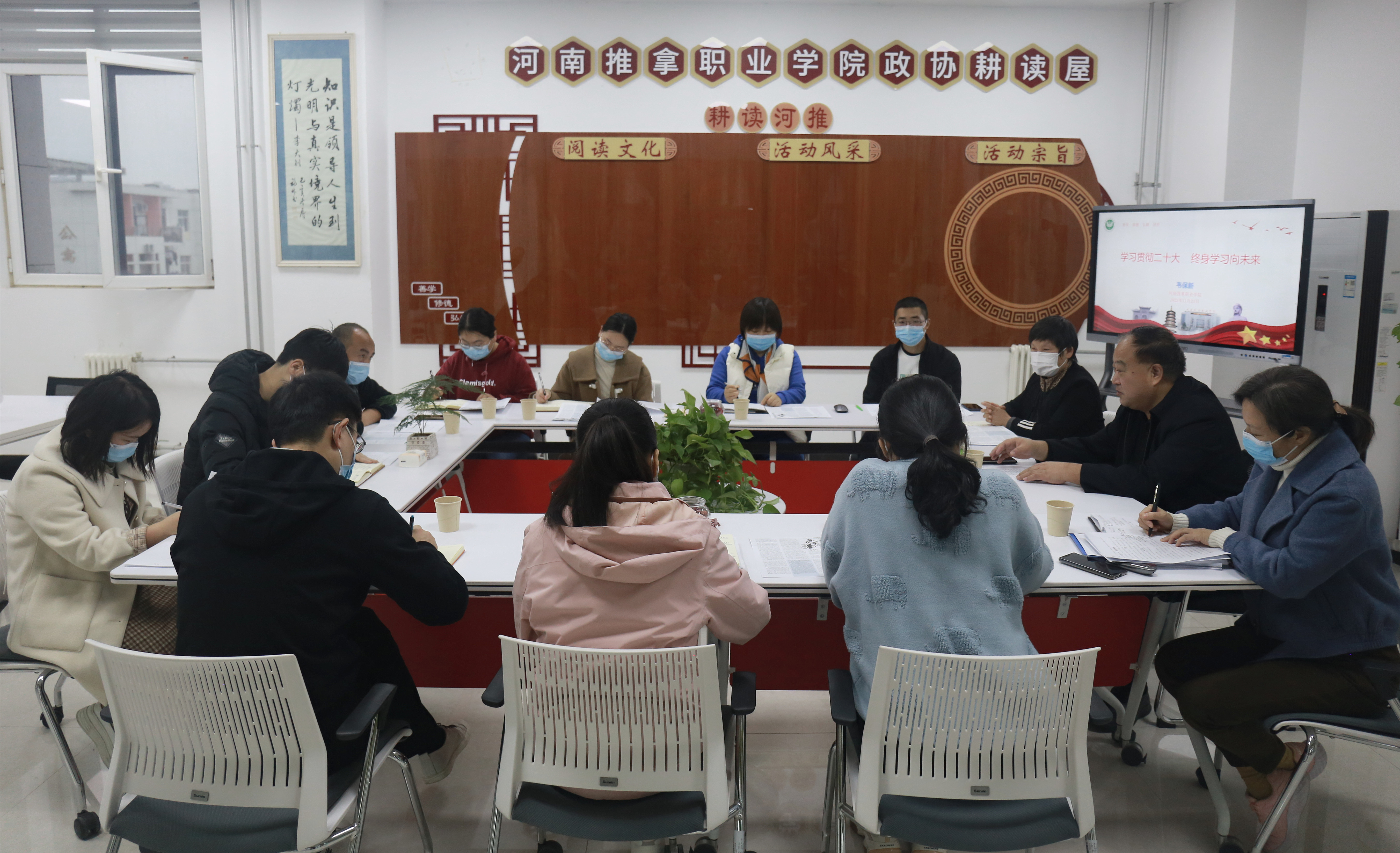 按照教育部做好2022年全民终身学习活动周工作部署,11月23日下午,以“学习贯彻二十大,终身学习向未来”为主题的读书学习分享会在学院耕读屋举行。