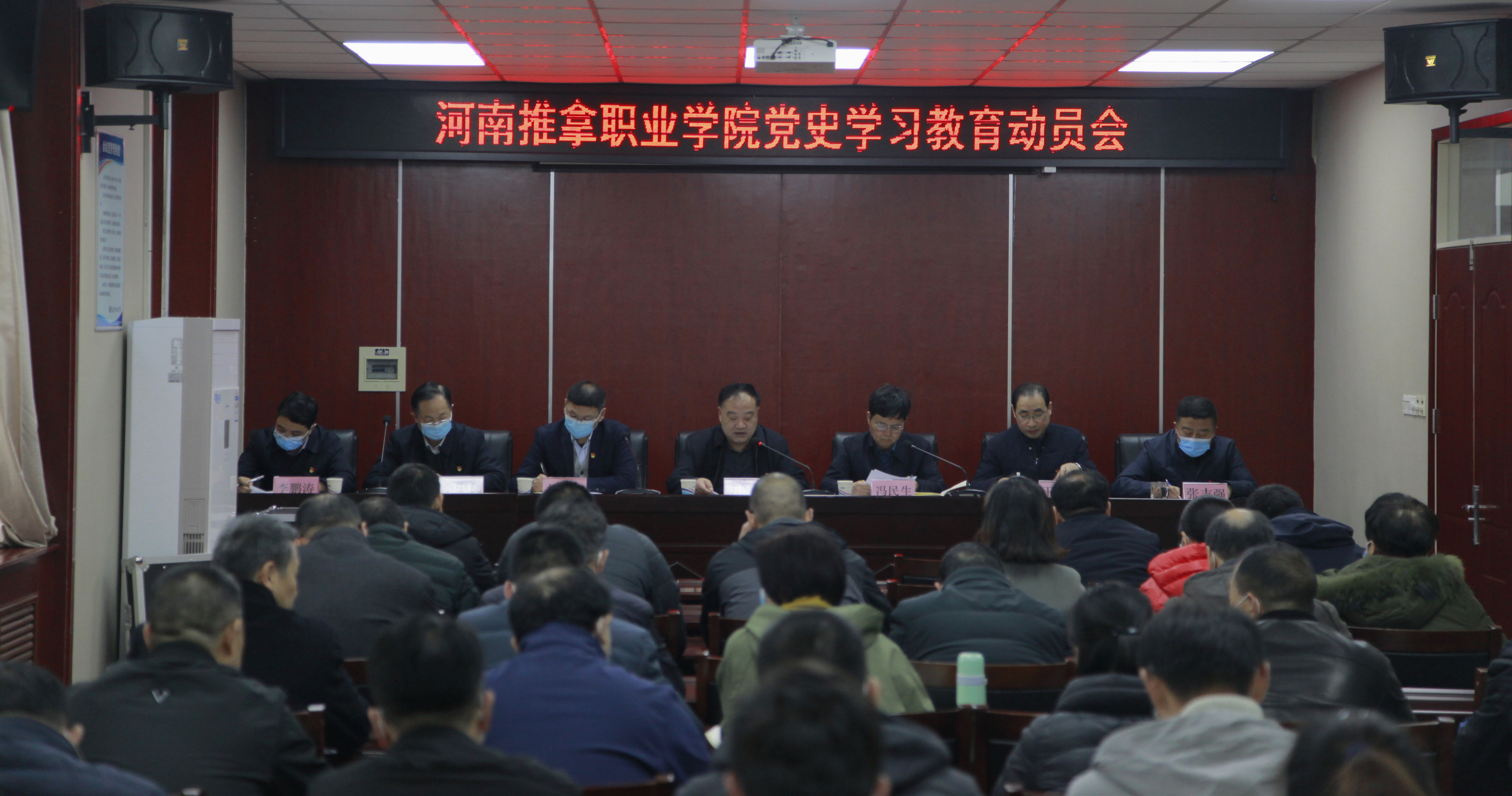 3月19日,学院召开党史学习教育动员会,就认真贯彻落实中央、省委、市委党史学习教育动员大会精神和部署要求,结合实际,高标准高质量完成党史学习教育各项任务进行动员部署。党委书记韦保新,院长冯民生,党委副书记杜占彪,副院长王轶群、李中良,工会主席张志强,纪委书记李鹏涛出席,各党总支(支部)书记、委员以及各部门主要负责同志参加会议。会议由冯民生同志主持。