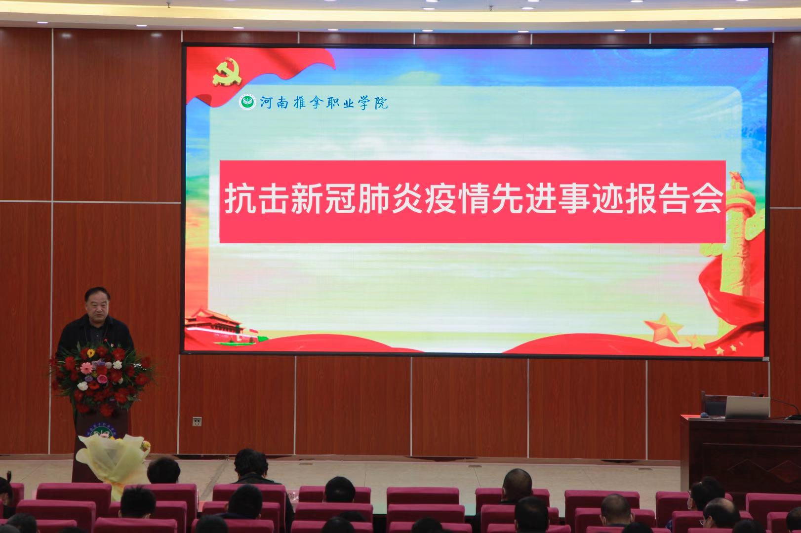 为弘扬伟大抗疫精神,凝聚新时代奋斗力量,推进高质量转型发展,12月15日下午,学院在图书馆报告厅举行抗击新冠肺炎疫情先进事迹报告会。原河南科技大学第一附属医院党委书记王瑞丽,全国抗击新冠肺炎疫情先进个人、原河南科技大学第一附属医院常务副书记、副院长毛毅敏,河南省抗击新冠肺炎疫情先进个人、河南科技大学第一附属医院感染科护士长王鲜茹应邀作先进事迹报告。在洛院领导、全体教职员工及部分学生代表参加。党委书记韦保新讲话。党委副书记杜占彪主持报告会。