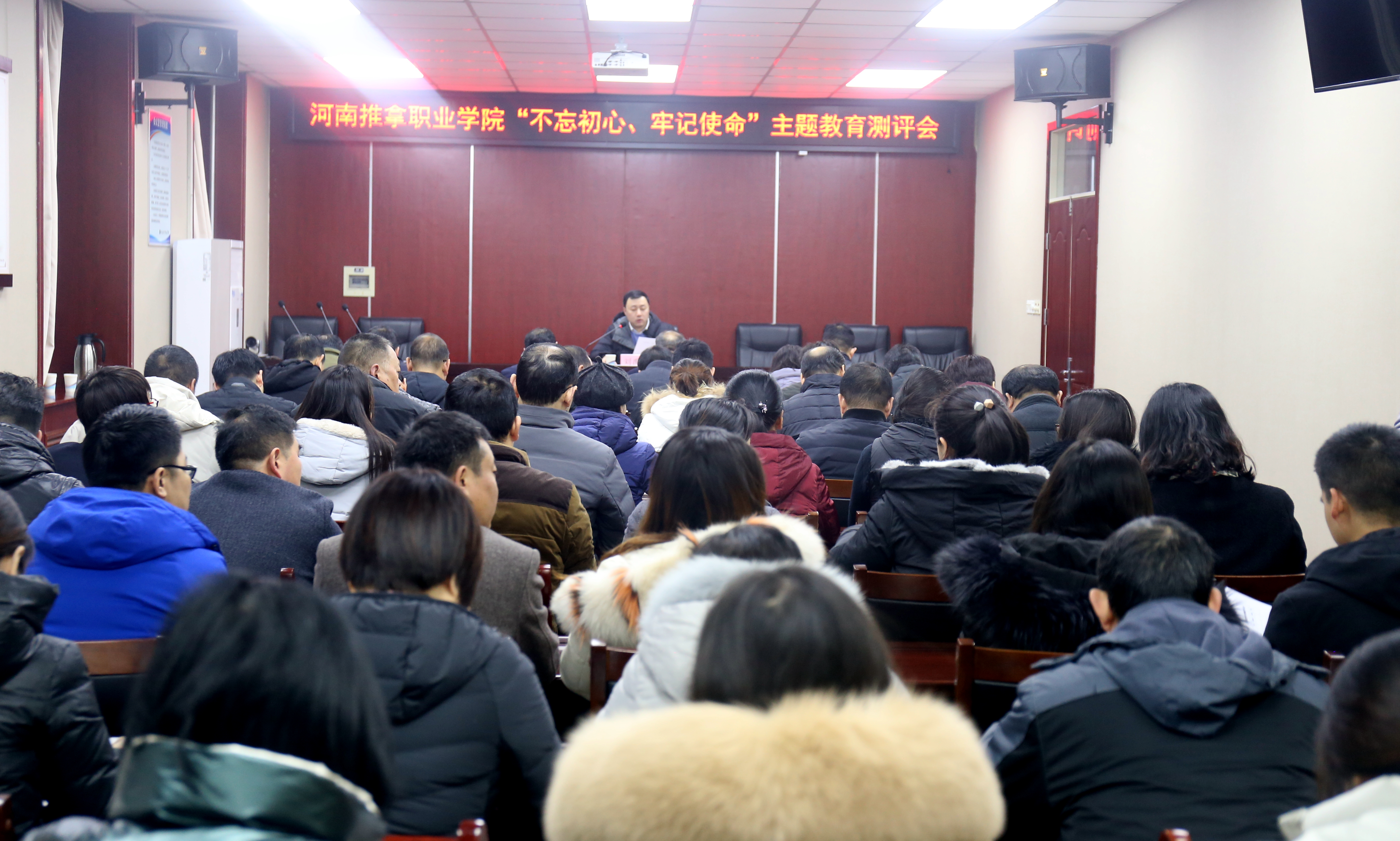按照省委高校工委安排部署,1月8日上午,学院在二楼视频会议室召开“不忘初心、牢记使命”主题教育测评会,省委高校工委第四巡回指导组副组长刘禹佳、成员李建党到会指导,院长娄赟,副院长王轶群、李中良,工会主席张志强出席,学院各党支部书记、两代表一委员、师生代表等参加测评。