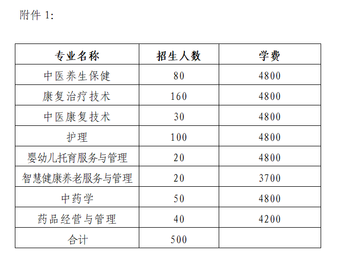 (一)招生专业:中医养生保健、康复治疗技术、中医康复技术、护理、婴幼儿托育服务与管理、智慧健康养老服务与管理、中药学、药品经营与管理。