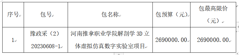 河南推拿职业学院解剖学3D立体虚拟仿真数字实验室项目的潜在供应商应登录“河南省公共资源交易中心网站(http://www.hnggzy.net)” 凭单位身份认证锁(CA数字证书)下载获取采购文件,并于2023年7月3日9点00分北京时间)前提交响应文件。