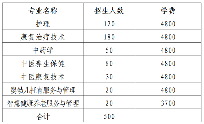 (一)招生专业:护理、中药学、康复治疗技术、中医养生保健、中医康复技术、婴幼儿托育服务与管理、智慧健康养老服务与管理。