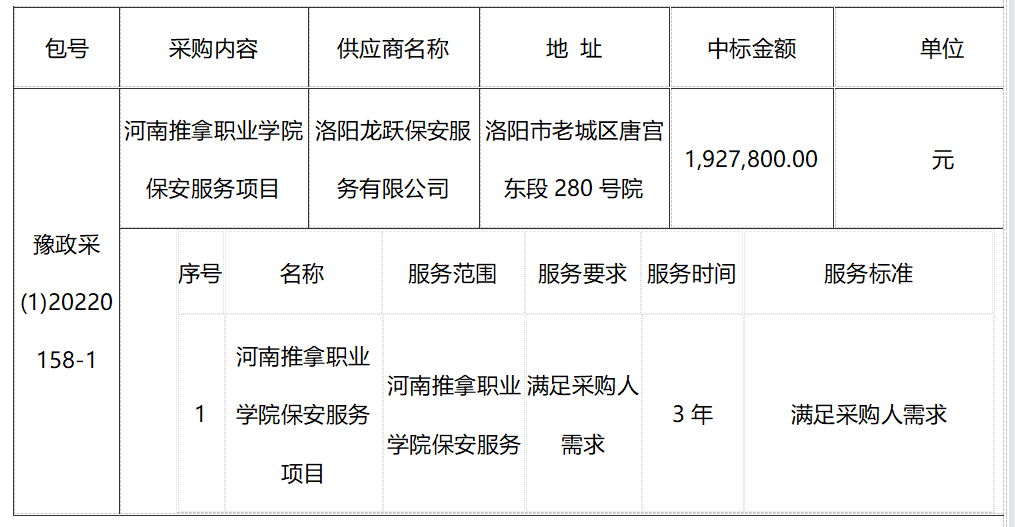 2、采购项目名称:河南推拿职业学院保安服务项目