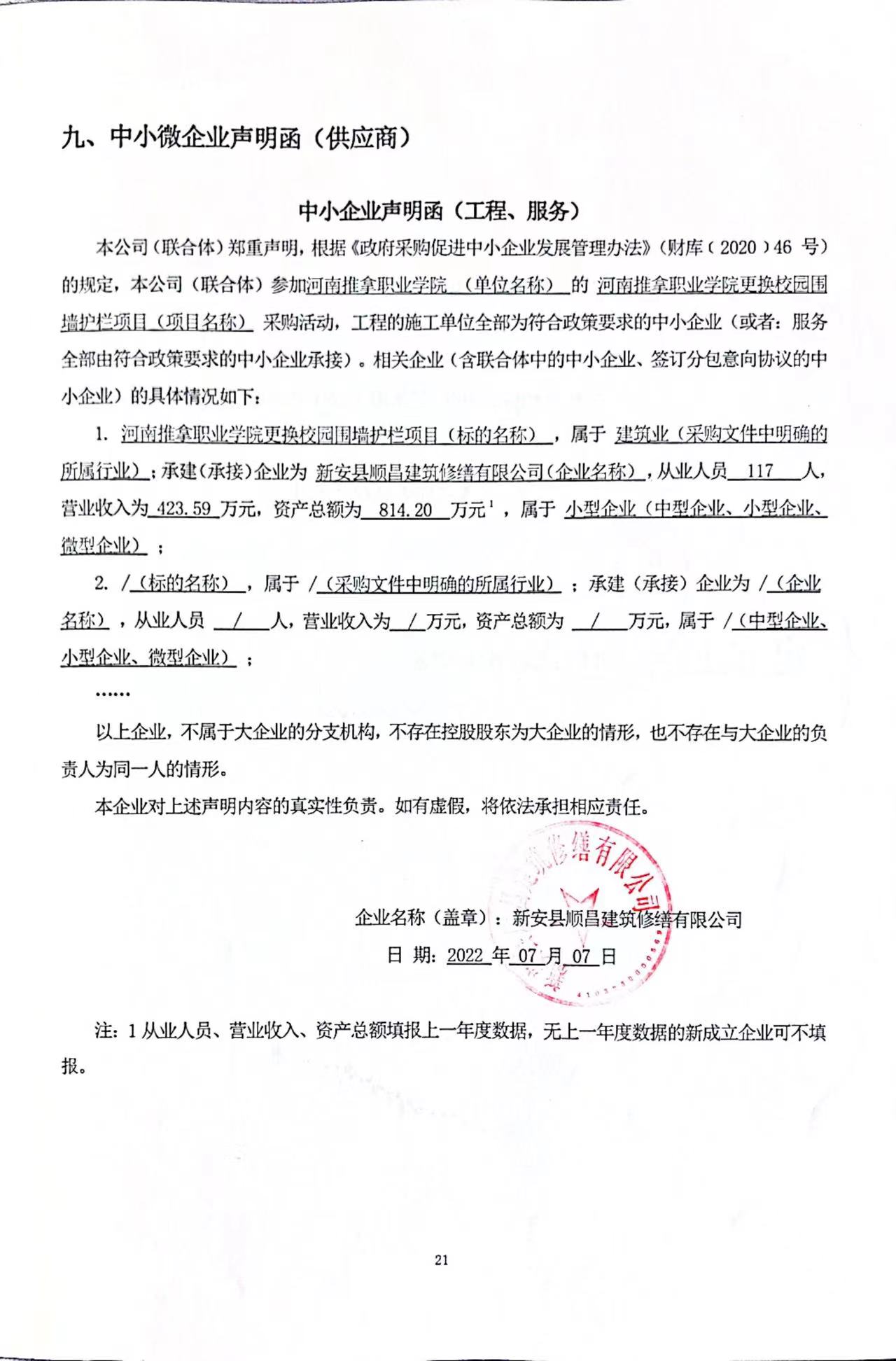 附件:中小企业声明函