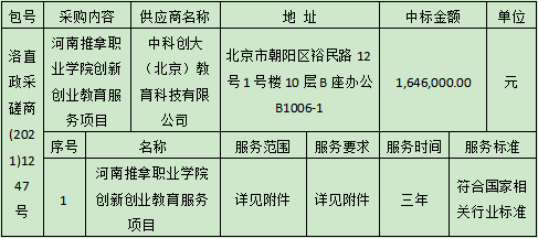 河南推拿职业学院创新创业教育服务项目-成交公告