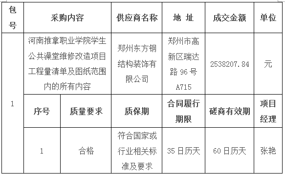 本项目成交公告在《河南省政府采购网》《洛阳市公共资源交易中心网》《河南推拿职业学院官网》上发布。成交公告期限为1个工作日。