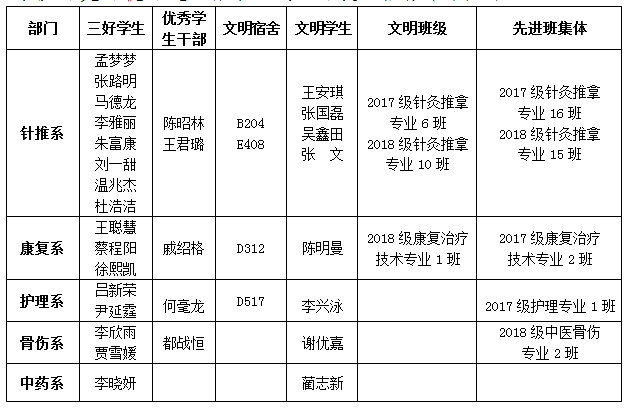 根据《河南省教育厅 共青团河南省委关于评选表彰2020年河南省普通高等学校三好学生、优秀学生干部和先进班集体的通知》(教学〔2020〕131号)和《中共河南省委高校工委 河南省教育厅关于开展2020年度全省教育系统“两创两争”活动先进集体和先进个人评选工作的通知》(豫高发〔2020〕38号)要求,经班级推荐,系部评先评优工作小组初评、公示无异议,学院评先评优评选工作小组民主评议,推荐结果如下:
