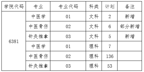 8月4日河南省高职高专提前批临床医学类录取后,我院中医学、中医骨伤、针灸推拿三个专业理科尚有少量计划,文科计划已满。为满足广大考生上学愿望,特申请文科追加部分计划(具体分专业计划见下表),经河南省招生办公室批准,现面向社会征集志愿。征集志愿时间截止8月5日18:00,请上线考生把握最后一次专科提前批志愿填报时间,以免错过机会。现将我院专科提前批医学类征集志愿有关事宜通知如下:
